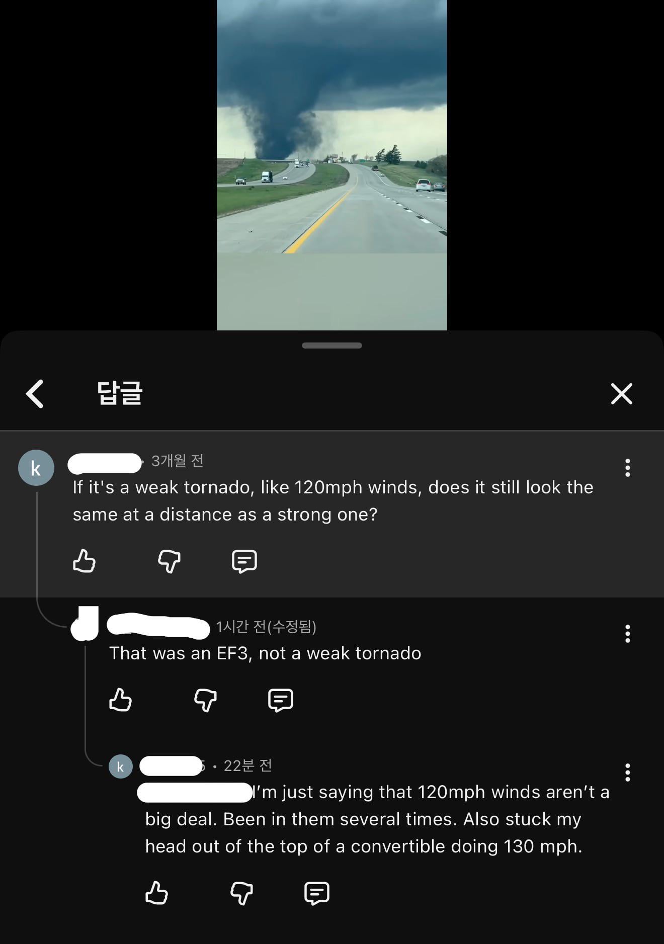 troubleseemstofollow on November 10, 2025 6:05 am Ive been about 100 yards from an EF3 – the rain felt like daggers on my face when I briefly came out of my vehicle to take pictures. (I’m a storm chaser – don’t try this at home)