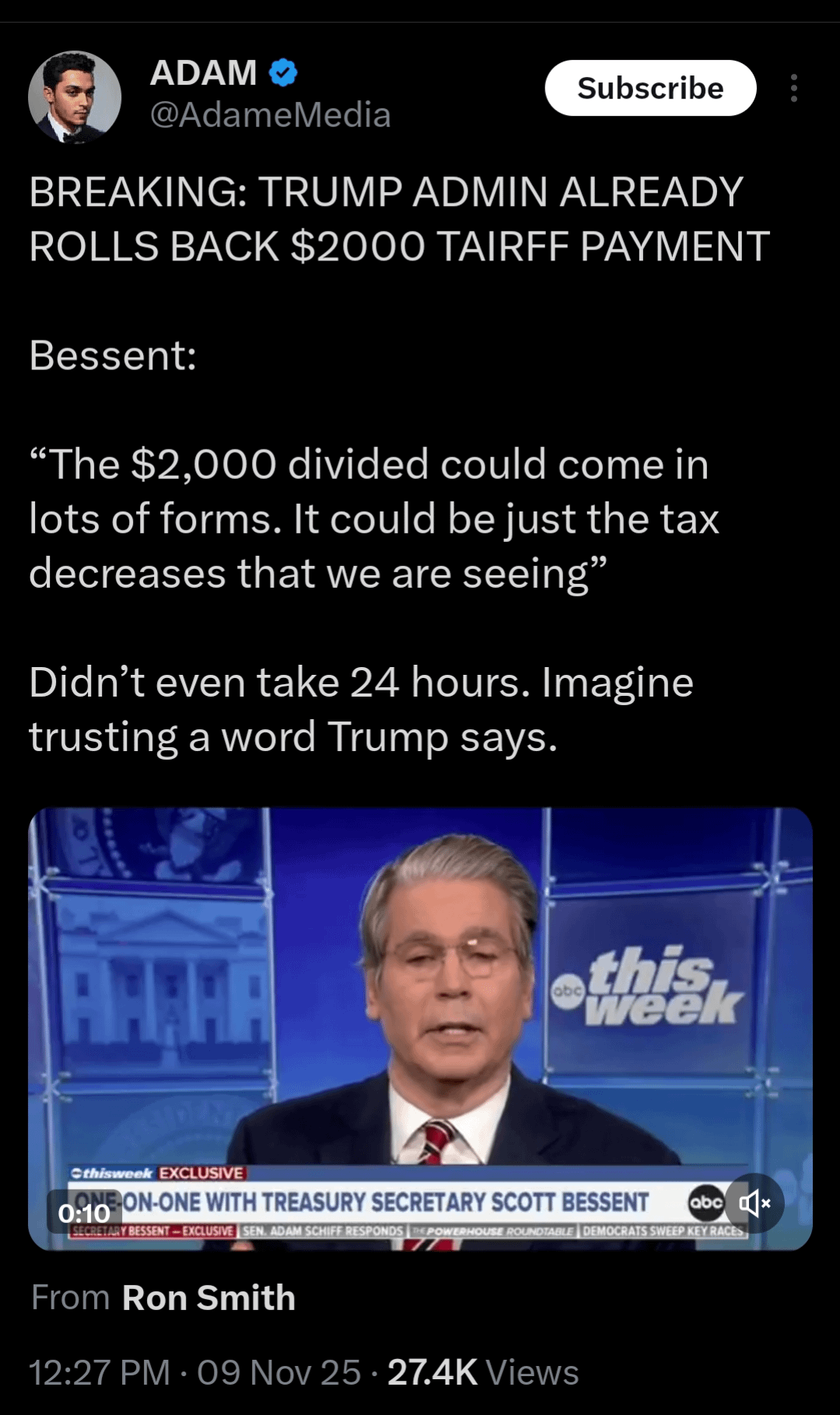 9. Tax decreases? Most of us aren’t billionaires, so our taxes aren’t being decreased. And thanks to tariffs, we’re now paying more taxes than ever.