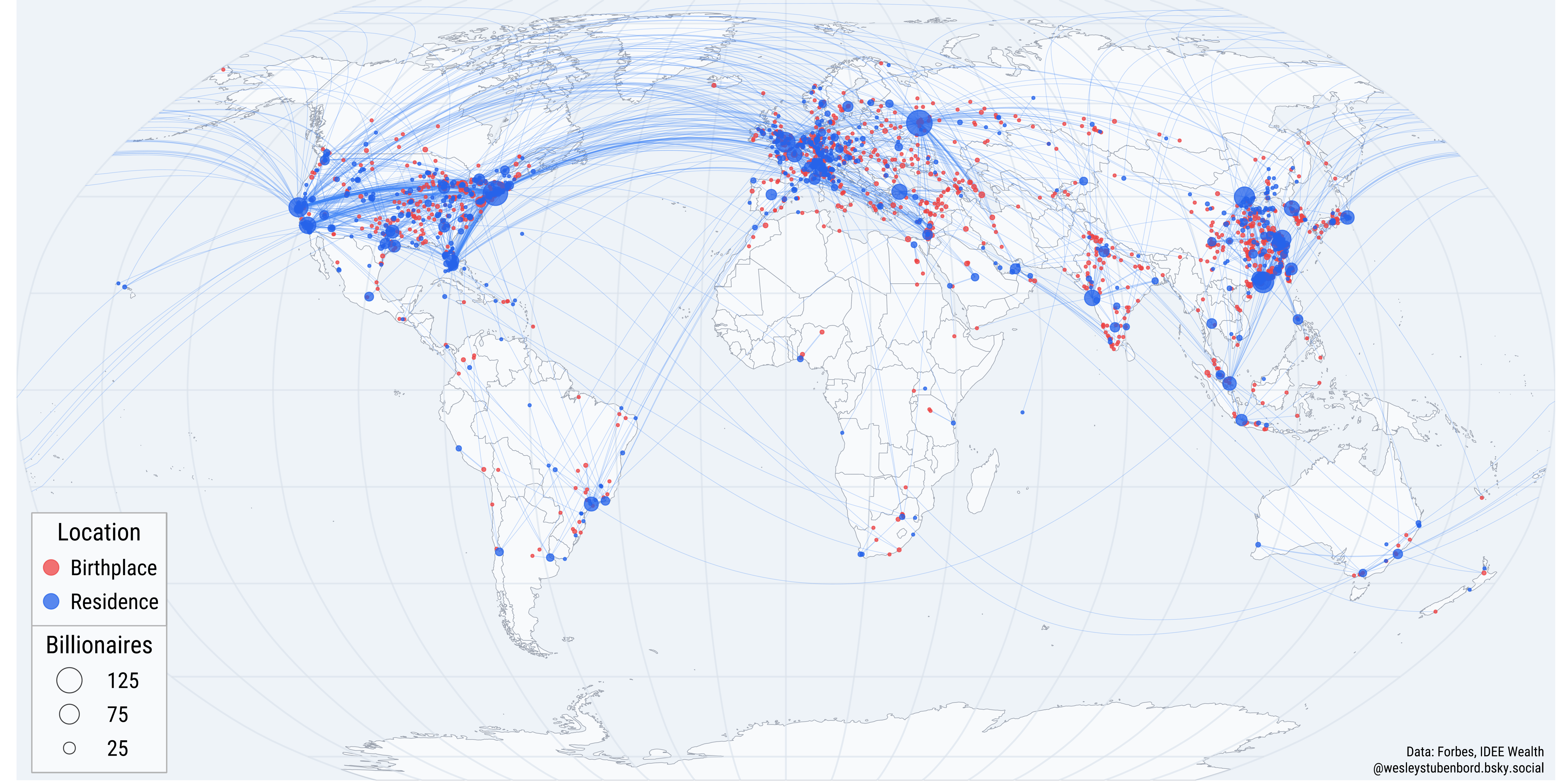 And the lines, as they are now, can mostly be used to tell one thing: That most billionaires that move between countries, appear to move between Europe and the US (but not in which direction).