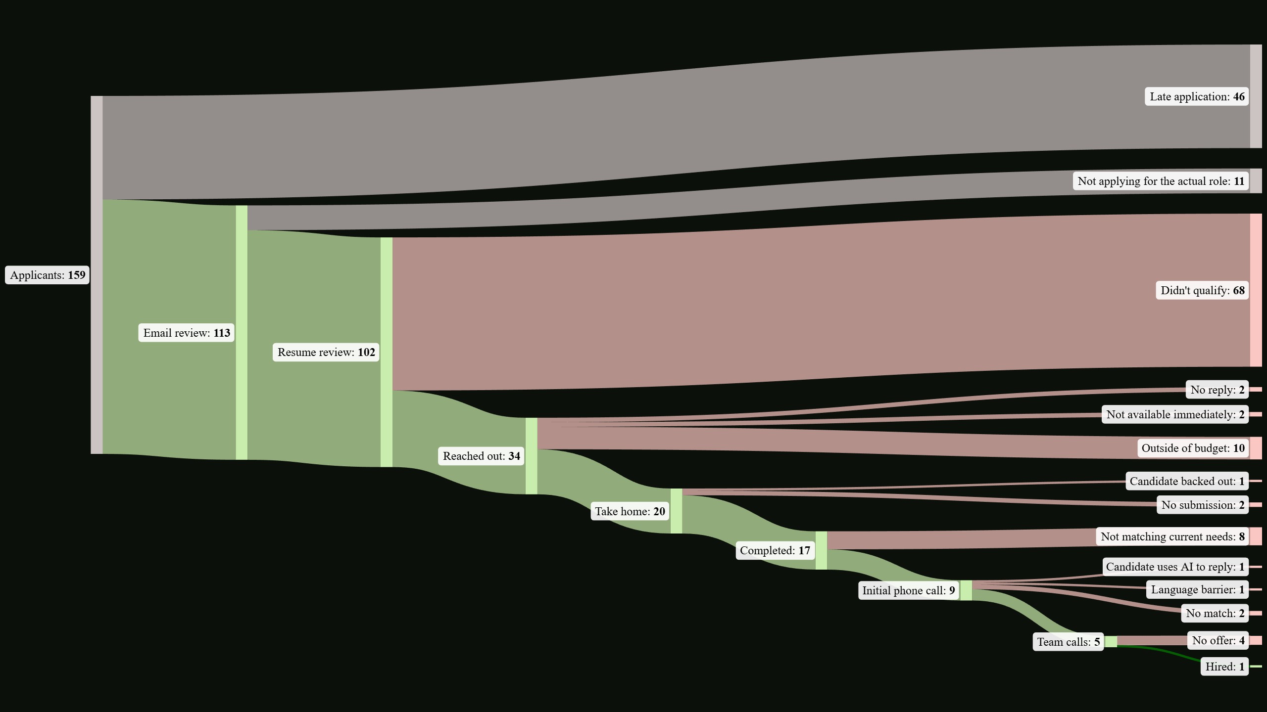 It’s a bit strange the initial phone call is so far down the chain. Is there a reason this doesn’t happen at the start? Also I’m curious how that one candidate used AI to reply on the phone!