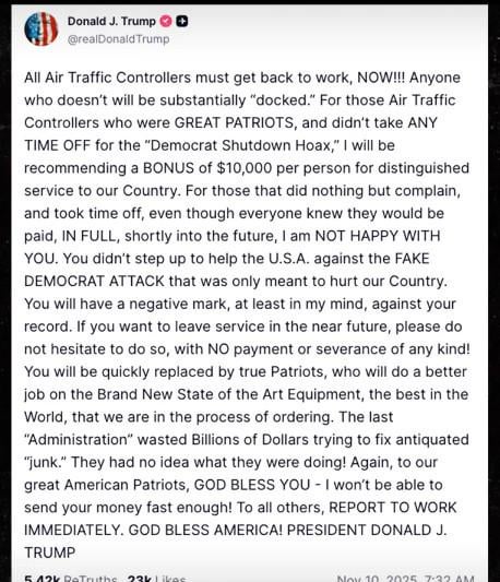 Trump threatens to dock air traffic controllers who don’t get back to work