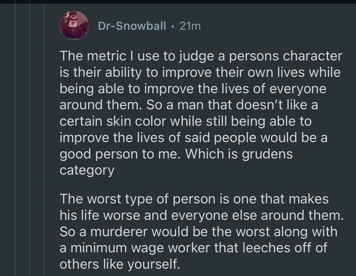 1. Babies are inherently bad people because they are unable to improve their own lives, per this person’s philosophy.