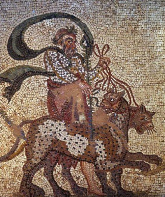 Roman mosaic showing Silenus and leopards, which are pulling Bacchus. Object is located in Kato Paphos (Cyprus) near the harbour. [566×677] by imperiumromanum_edu