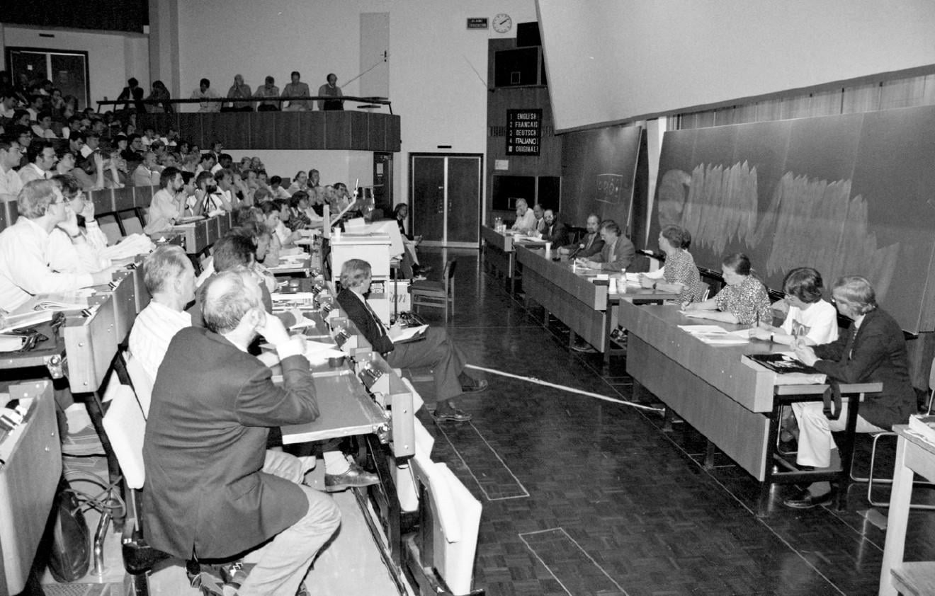 The first web conference at CERN in May 1994. The main auditorium was packed. [1320 x 842]. by Dhorlin