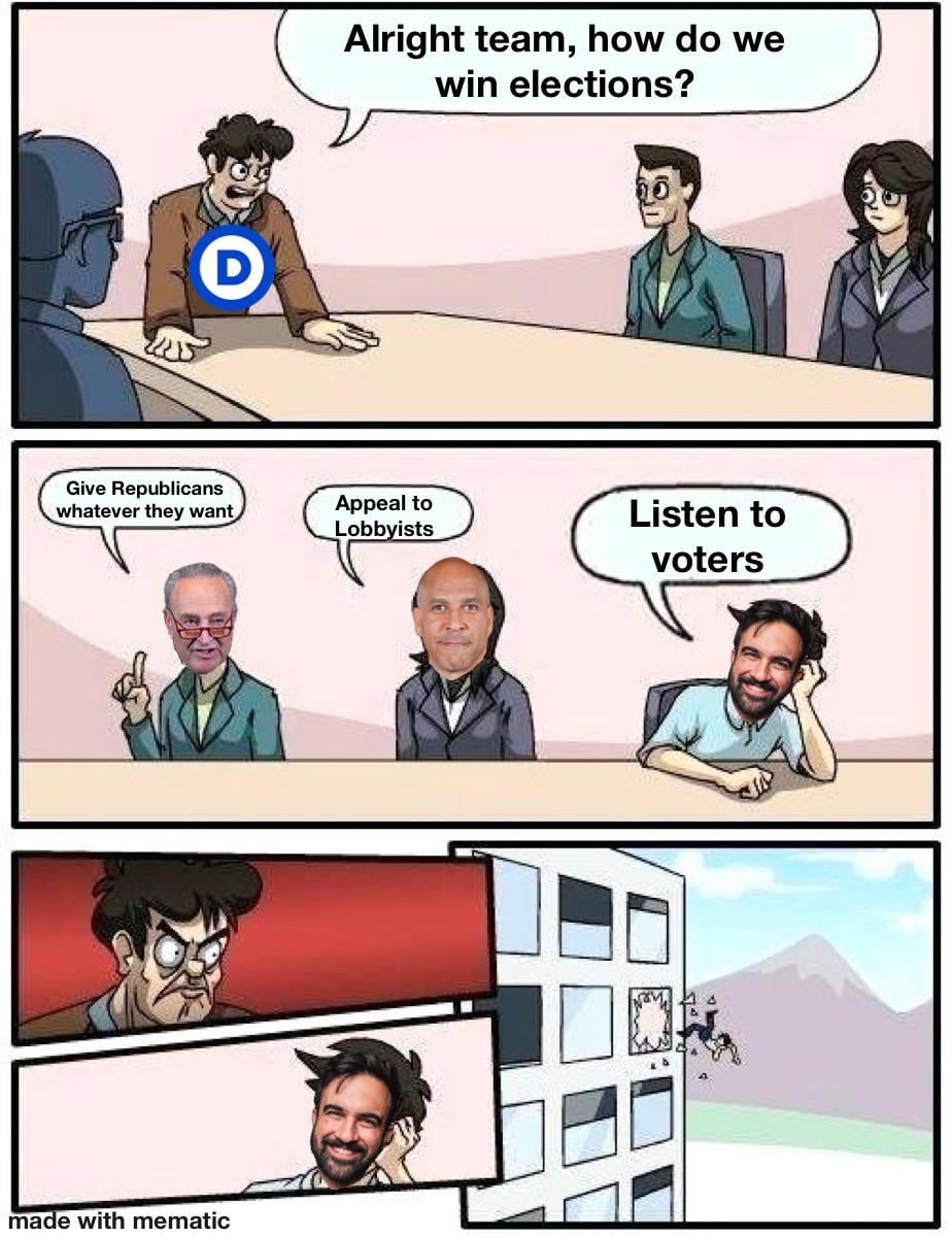 I get Schumer but why is Booker there? He didn’t vote for this and has been one of the most prominent fighters against the administration