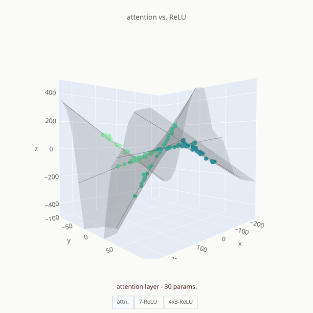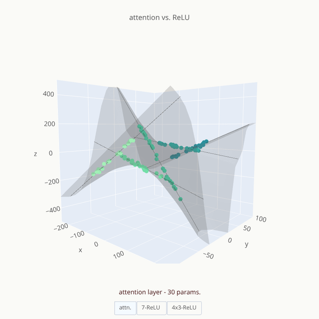 • This creates a "division of labor" and lets the linear functions stay as-is while the attention layer toggles between them using the higher-order variable y