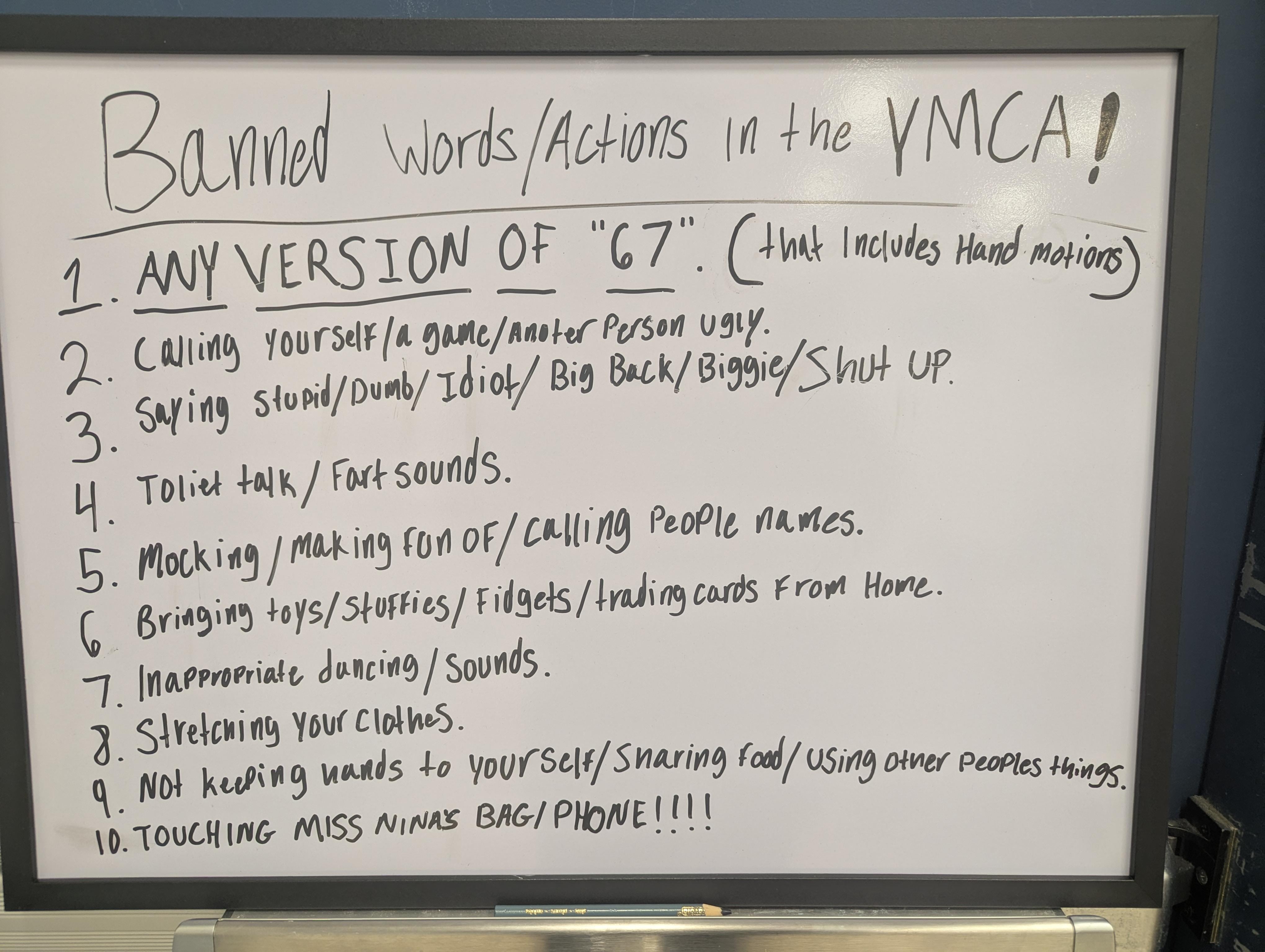 The YMCA may need to bring in a bunch of 40-50 year old moms to hold a “67” rally. They could hand out 67 stickers, do the 67 dance, maybe a freestyle real battle to end the night. Guarantee no kids would mention 67 again.