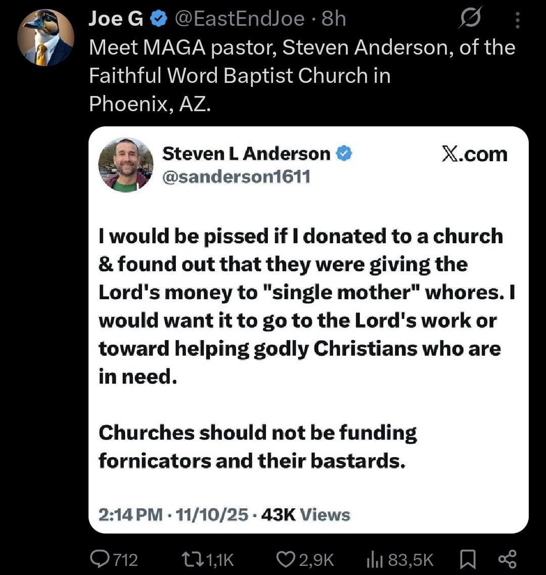 I highly doubt Steven L. Anderson donates to a church.