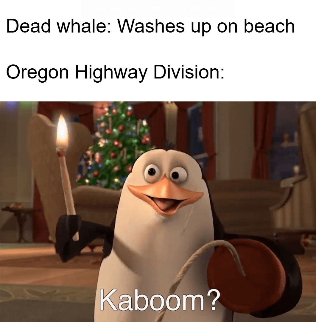 55 years ago today the Oregon Highway Division (now ODOT) detonated 450 kilograms (half a short ton) of dynamite to get rid of a dead sperm whale. by AdventurousPrint835