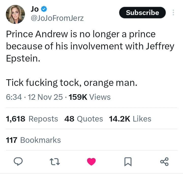 Couldn’t you just, I don’t know, gaslight him into confessing? You know, say that Prince Andrew confessed that Jeffrey said that Orange man was the boss of the operation, but he knew it was a lie because Orange man is not smart enough to run a global sex ring or to have JE done away with.