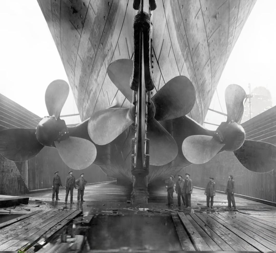 Olympic had a four-bladed center propeller when it was completed, while the Titanic had a three-bladed center propeller
