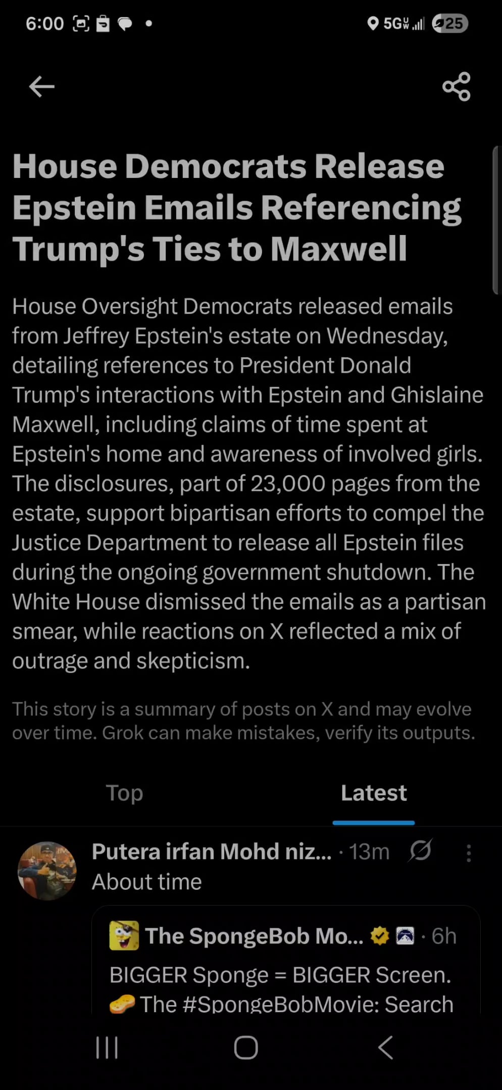 News section about Epstein is flooded with spongebob movie reactions