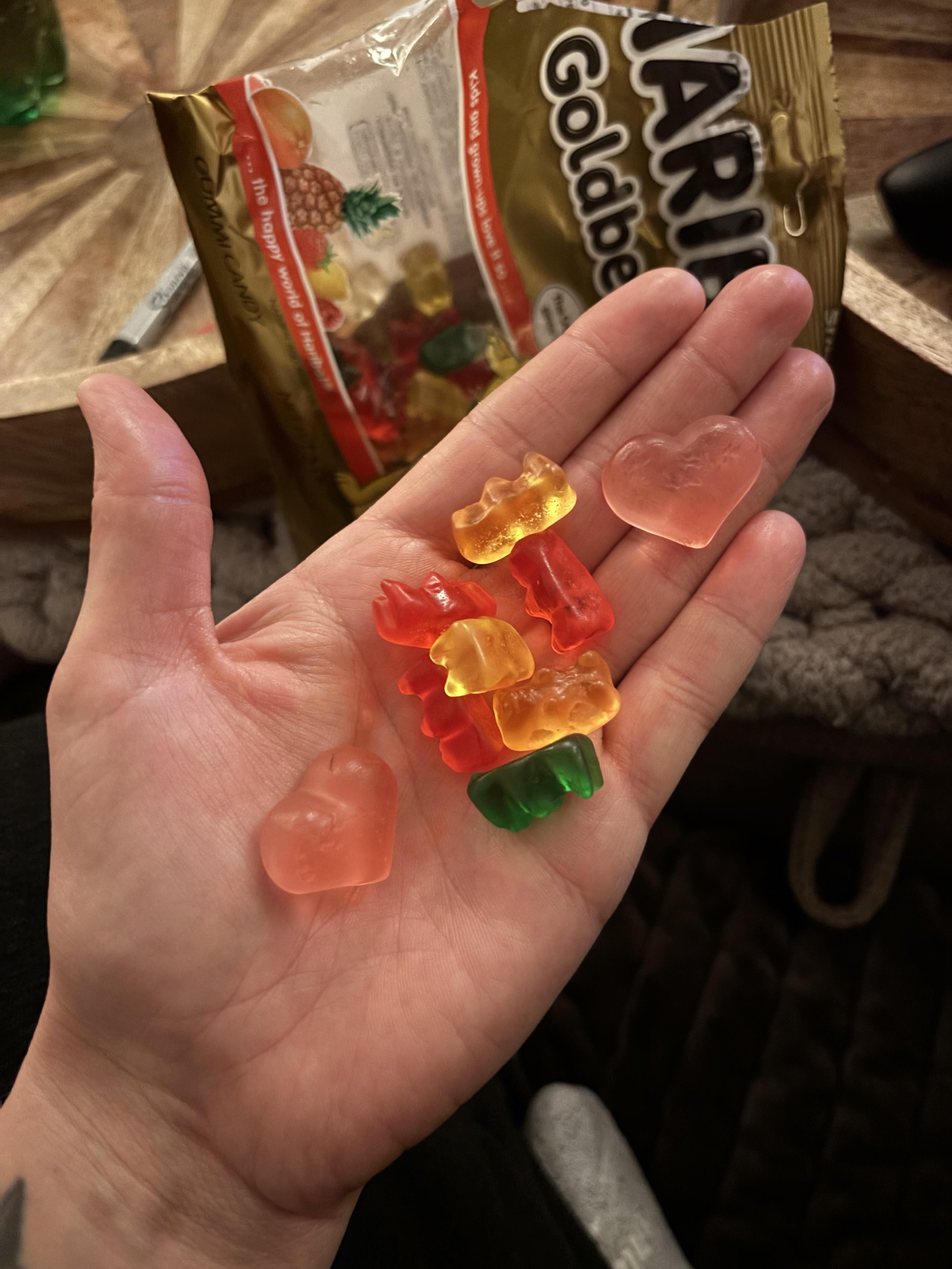Makes sense. Gummy Bears of the Haribo region are known for bringing the hearts of their enemies back to their colony so the cubs may enjoy them. When workers collect bears for harvest, occasionally an uneaten heart or two is also collected.