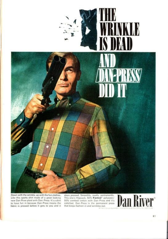 Dan River wrinkle-free shirt ad, 1967 — “The wrinkle is dead, and Dan-Press did it.” by AxlCobainVedder