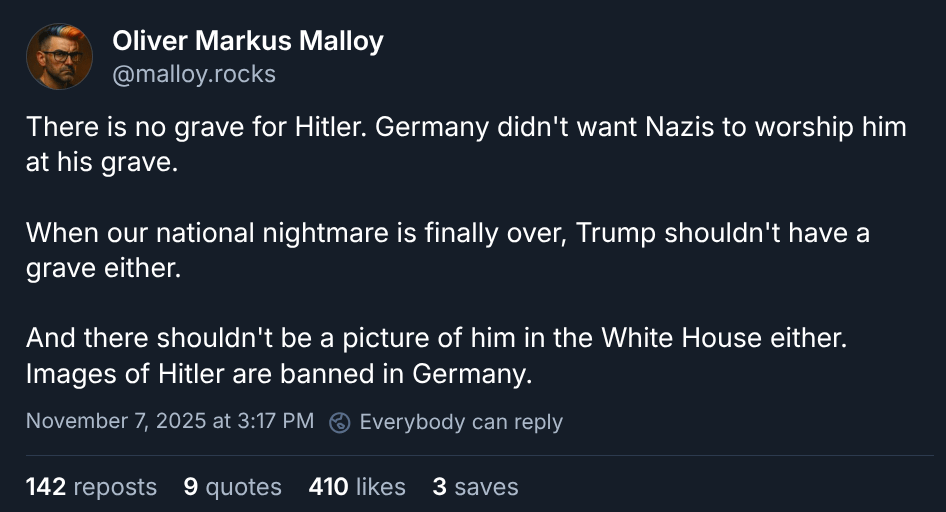 I disagree. I think Trump deserves a grave–at the bottom of an effluent tank where all the fecal material and piss is dumped at a factory pig farm. That would suit him. Plus the pigs would be paying respects to him 24/7. Win/win.
