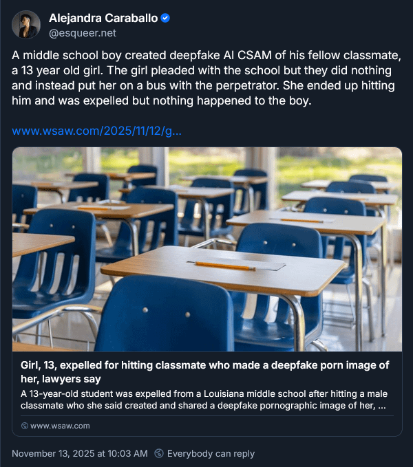 Can the school be charged here for assisting in distribution of CSAM? If not it’s at least negligence and child endangerment.