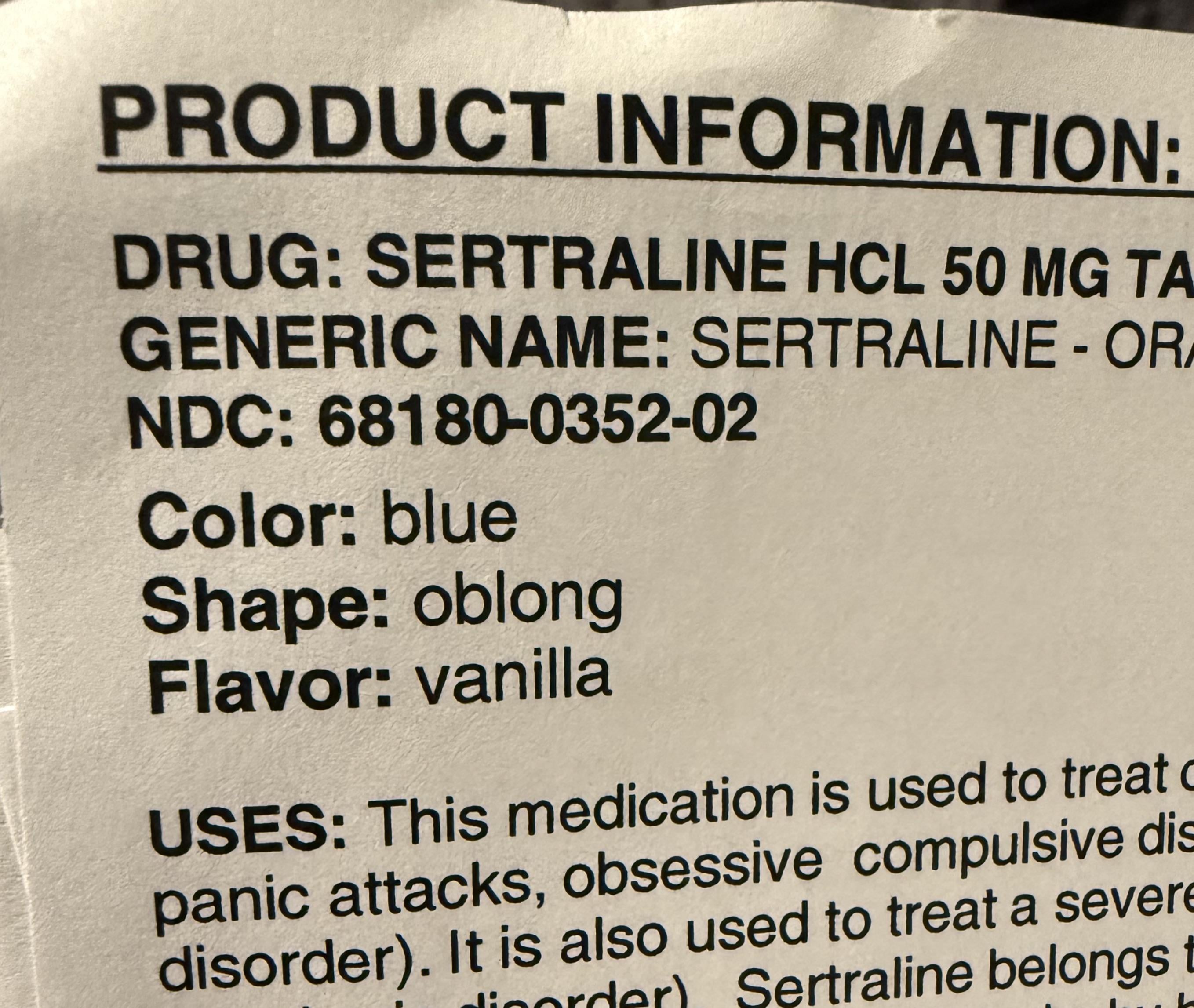 You know, I’m a pharmacy tech and didn’t know sertraline tablets were potentially flavored. Wonder if it’s just this specific manufacturer…we carry a different manufacturer than what you’ve shown here at work and I’ve never had anyone come back saying it tastes like vanilla or asking about a potential flavor they taste… 🤔