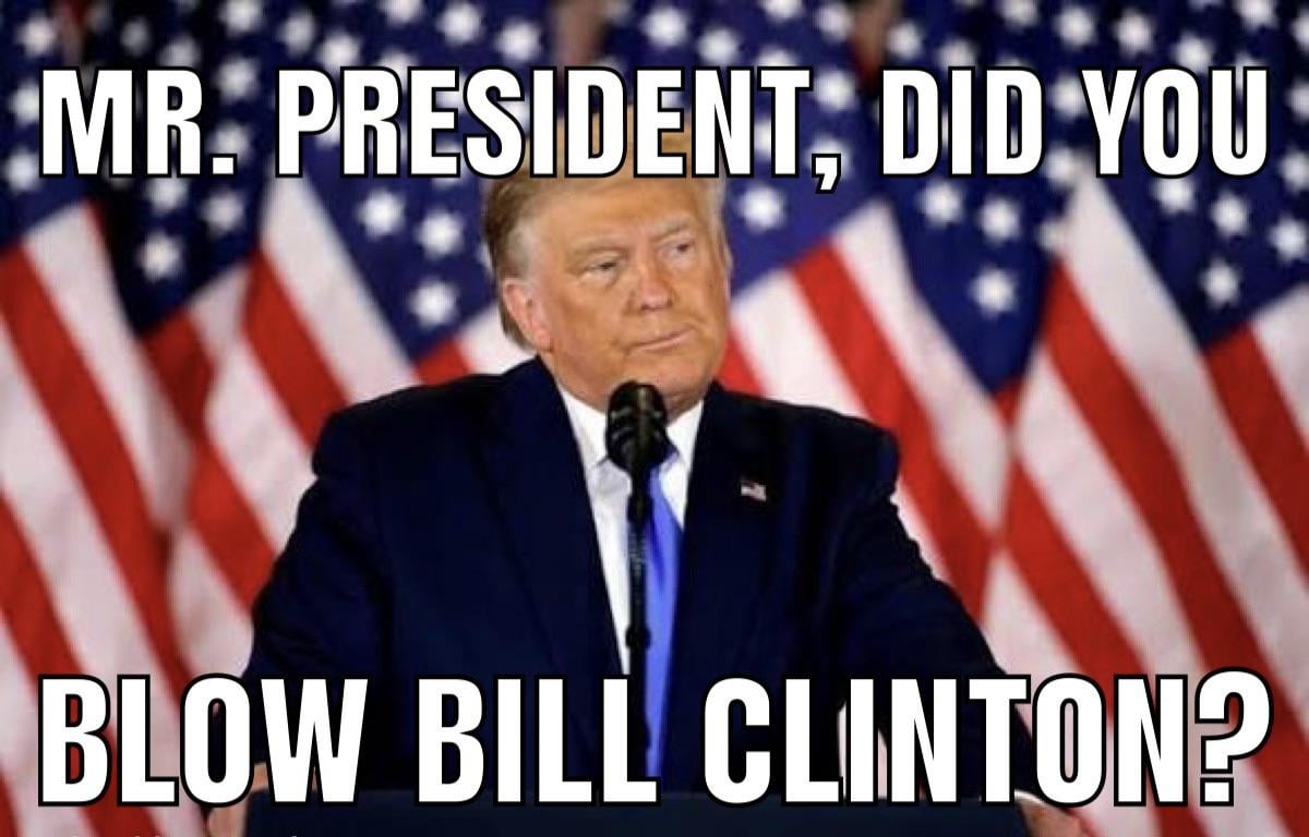 “President Trump have you ever given Bill Clinton a blowjob?”