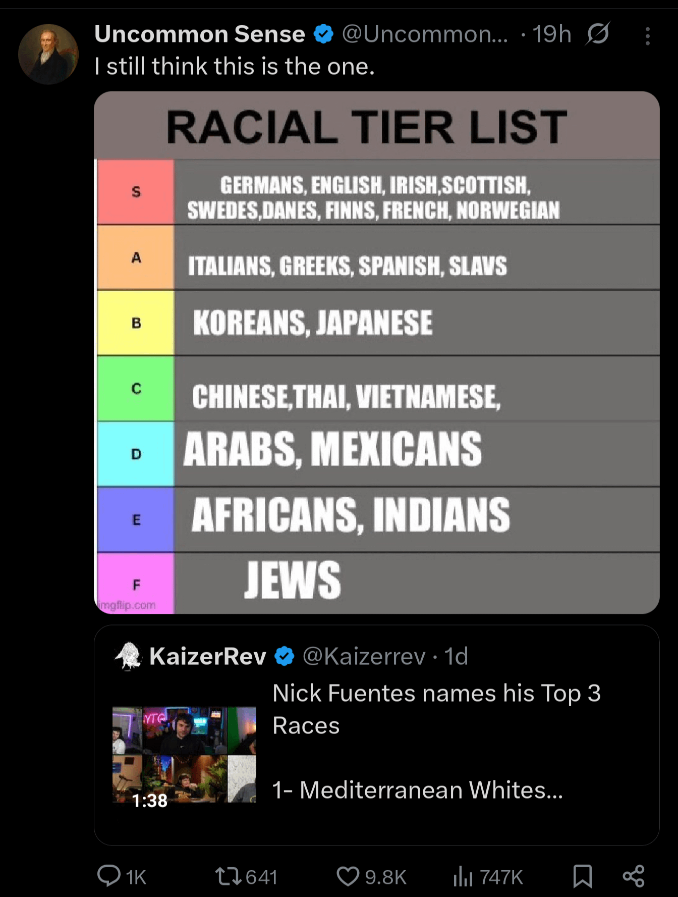 Nick and this DB putting the Irish and “swarthy” Mediterranean whites on top of their lists should really piss off the traditional racists, Klansmen, and Nazis.