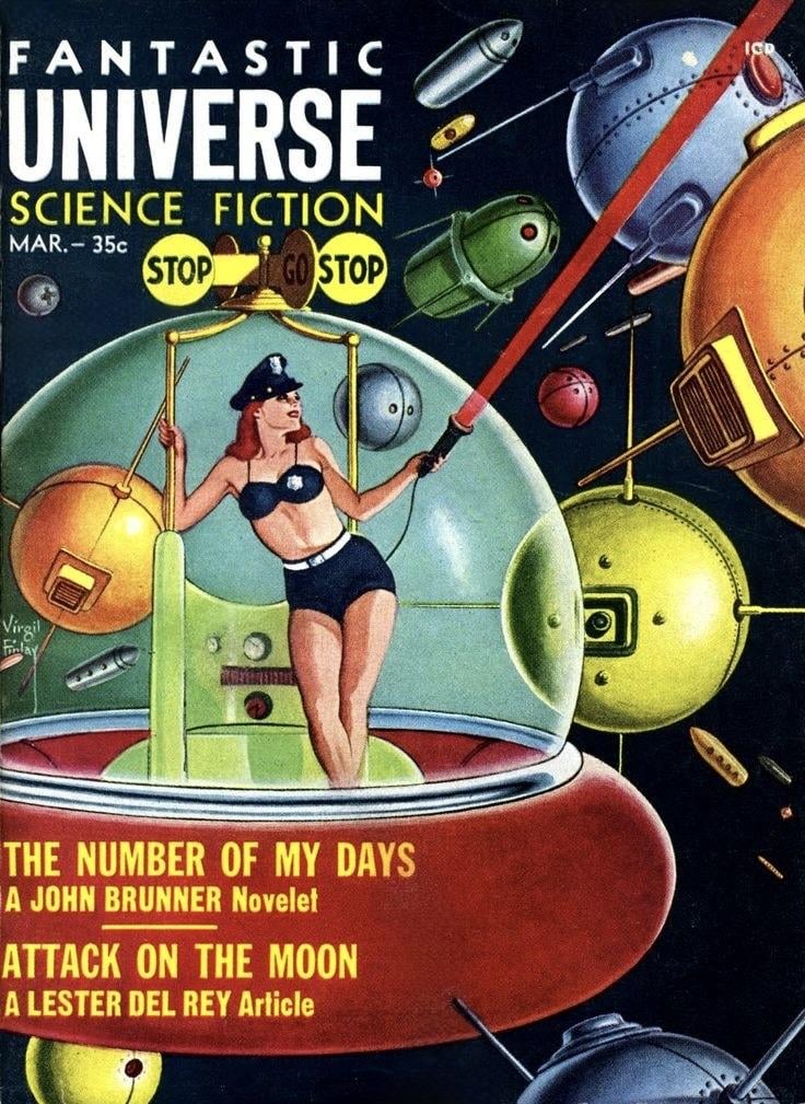 Fantastic Universe magazine cover art by Virgil Finlay, 1959