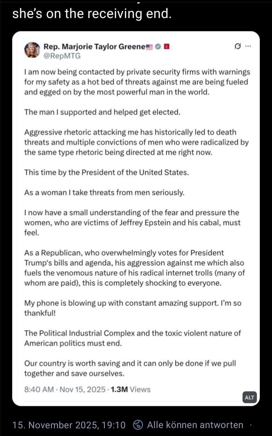 I think I would’ve liked this post more if she added the victims of Trump’s threats in addition to the victims of Epstein – since y’know, democrat governors and such were targeted by trump’s cult too.