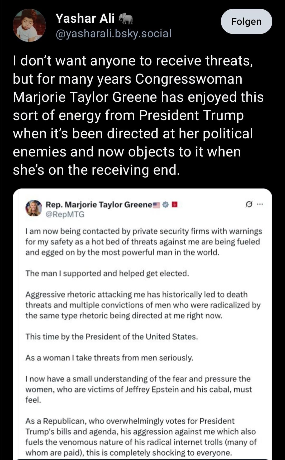 I can’t stand MTG. I think she’s an utter embarrassment and I stand against pretty much everything she stands *for* politically. But I would never, *ever*— not in a million years— send her a death threat. She’s a human being and she should be afforded dignity and safety… even if she won’t afford that to others.