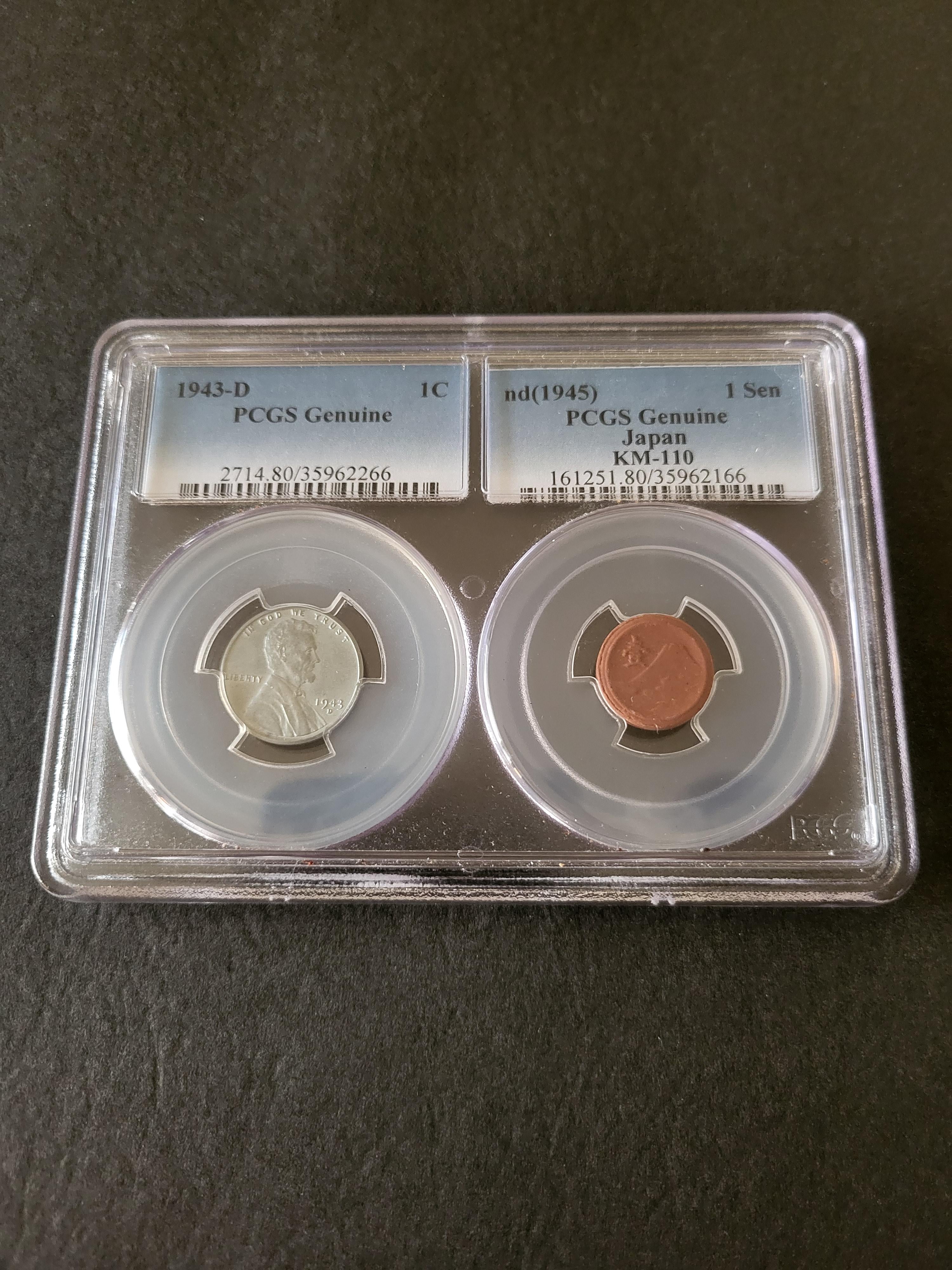 A pair of coins minted during the metal shortages of WWII. The American steel Penny and the Japanese clay Sen. by coinoscopeV2