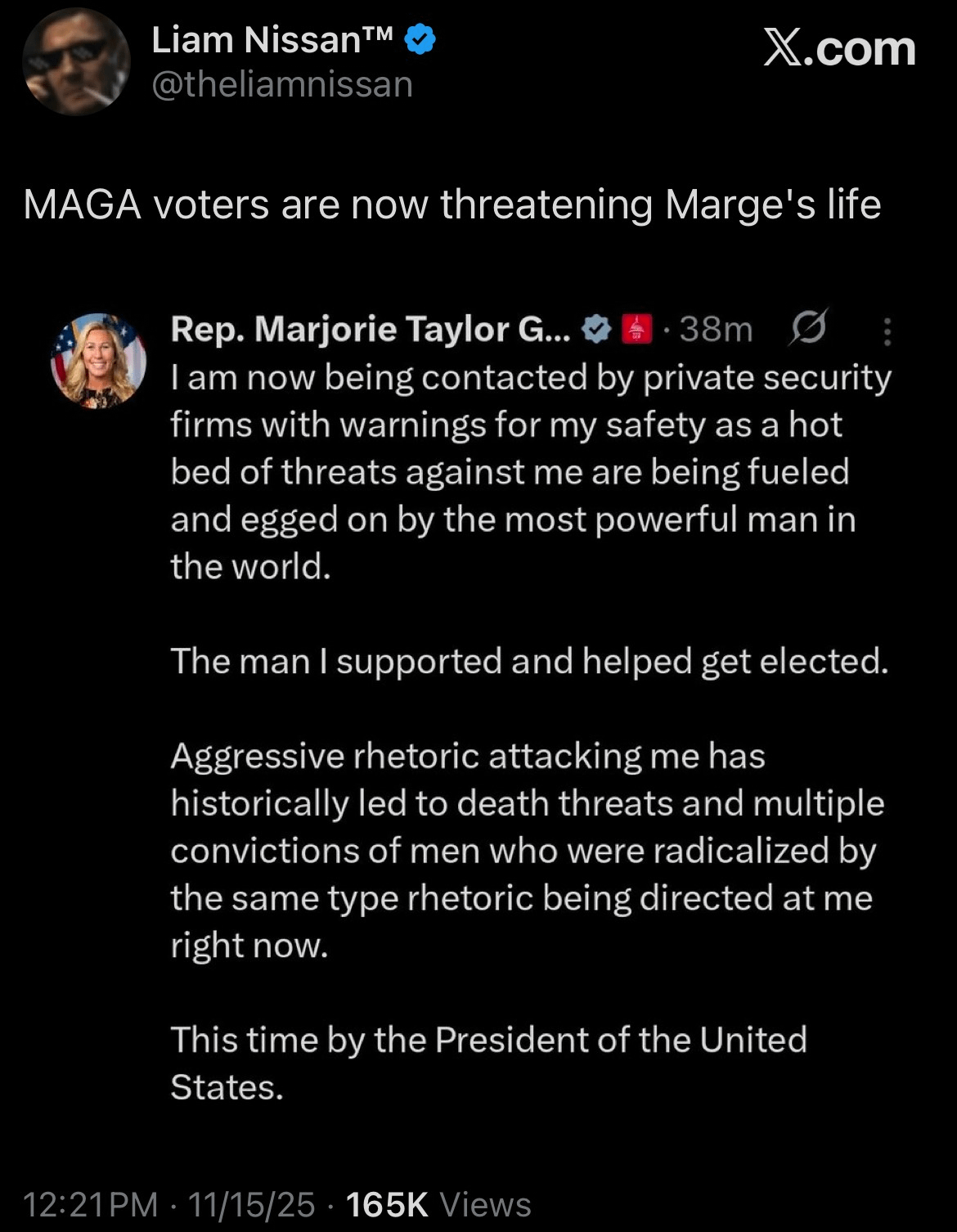 “The call is coming from the house” situation, huh? Bunch of rapists and pedo-apologists wanting to protect the boots of their masters. MTG can suck a fat one but at least she’s showcasing this internal MAGA struggle to the rest of us.