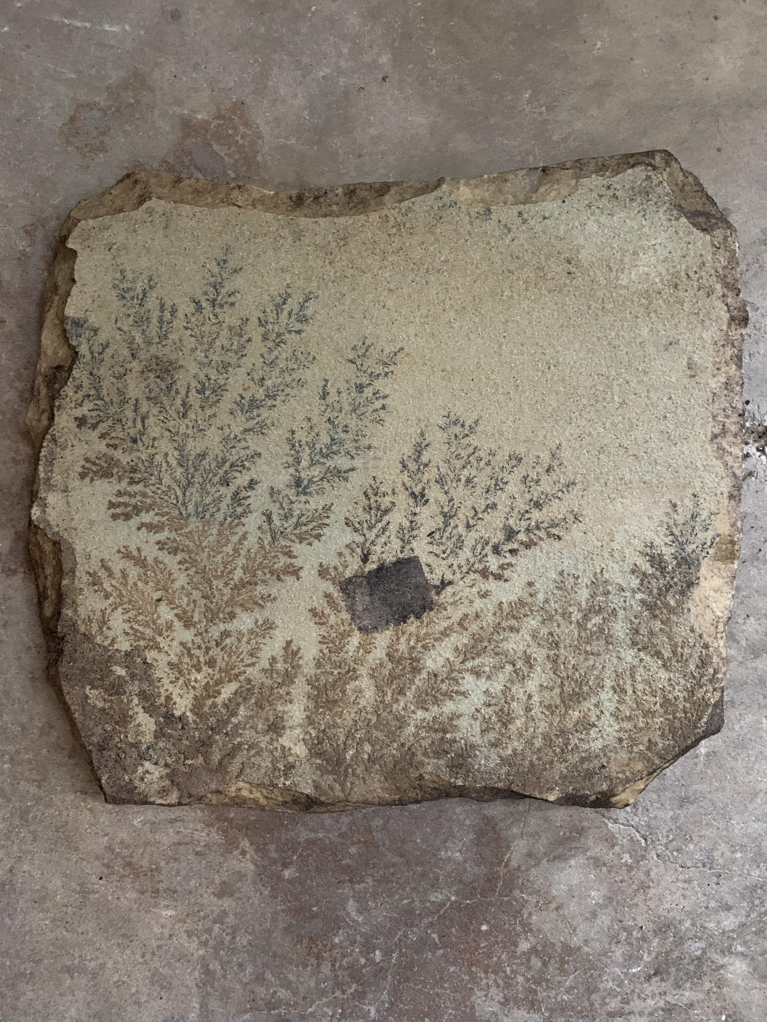 Those are not fossils. They are manganese dendrites. They’re formed by water flowing into cracks between layers of stone that precipitates out manganese oxides, creating branching patterns. You can buy them from various mineral sellers online.