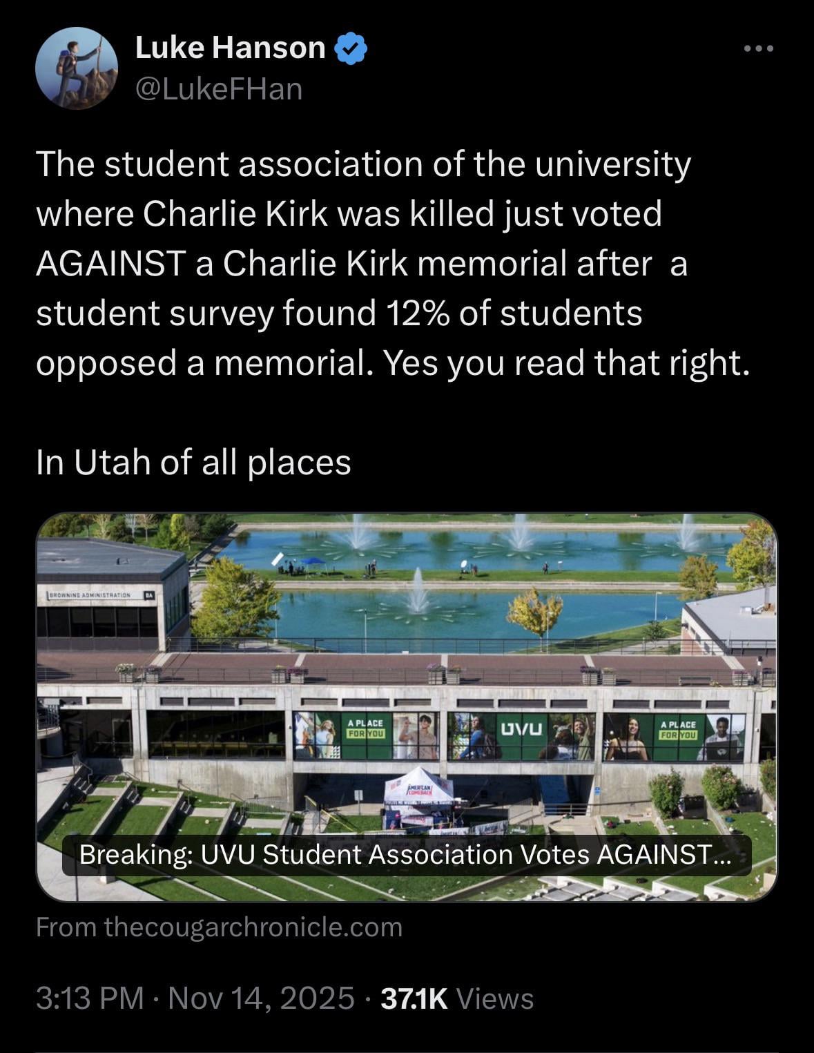 Yeah and maybe only 75 other students returned the survey and said they were for it. Or maybe only 20? UVU is a pretty culturally diverse place for UT.