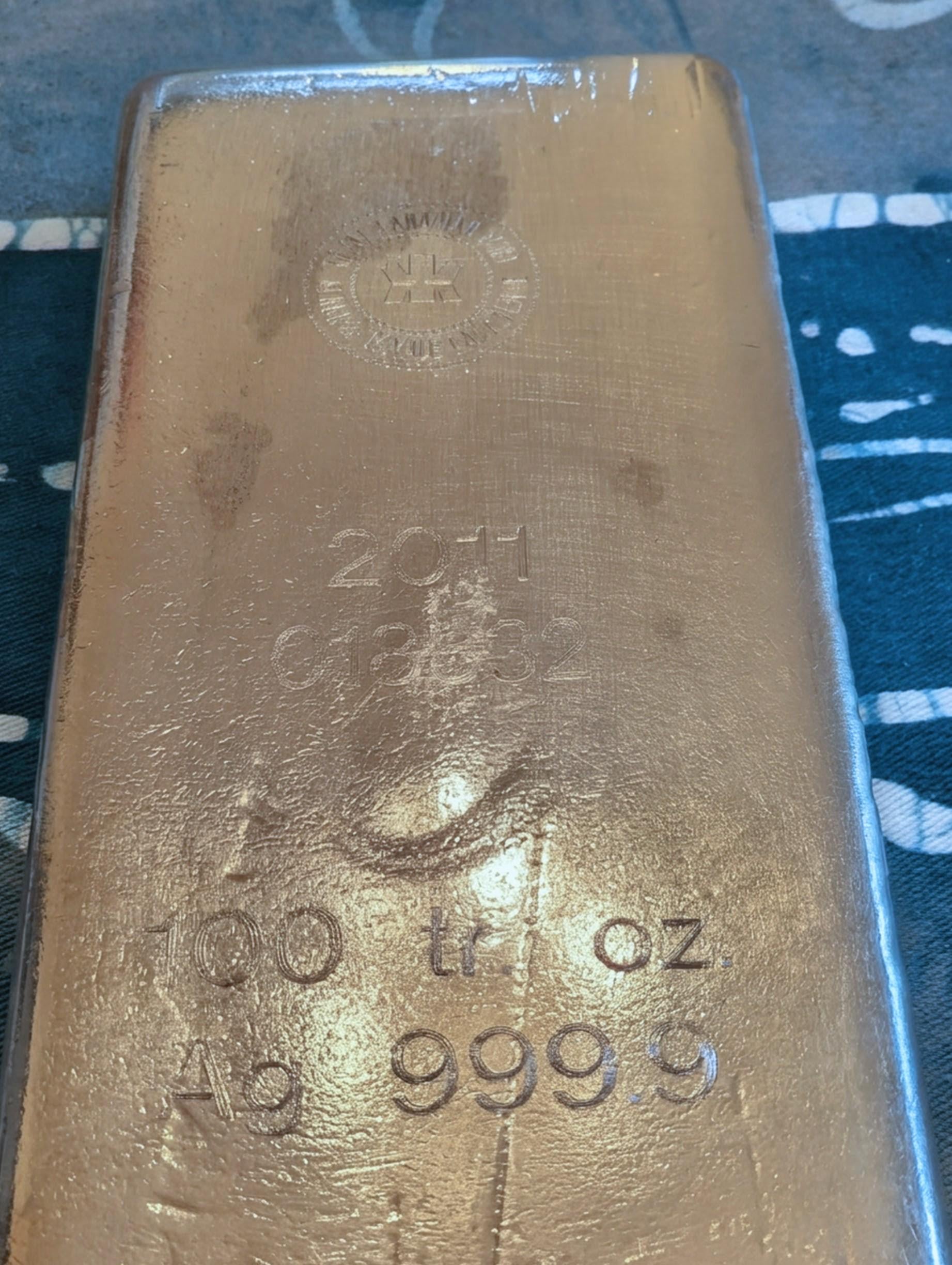 APLJaKaT on November 16, 2025 5:41 am Silver value right around US$5k. Probably a bit more.for a 100oz bar as they’re not too common. Nice inheritance.