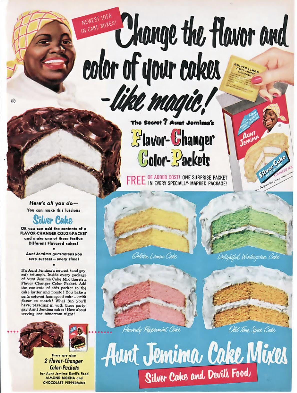 Aunt Jemima Flavor-Changer-Color-Packets for Aunt Jemima cake mixes. 1950s.