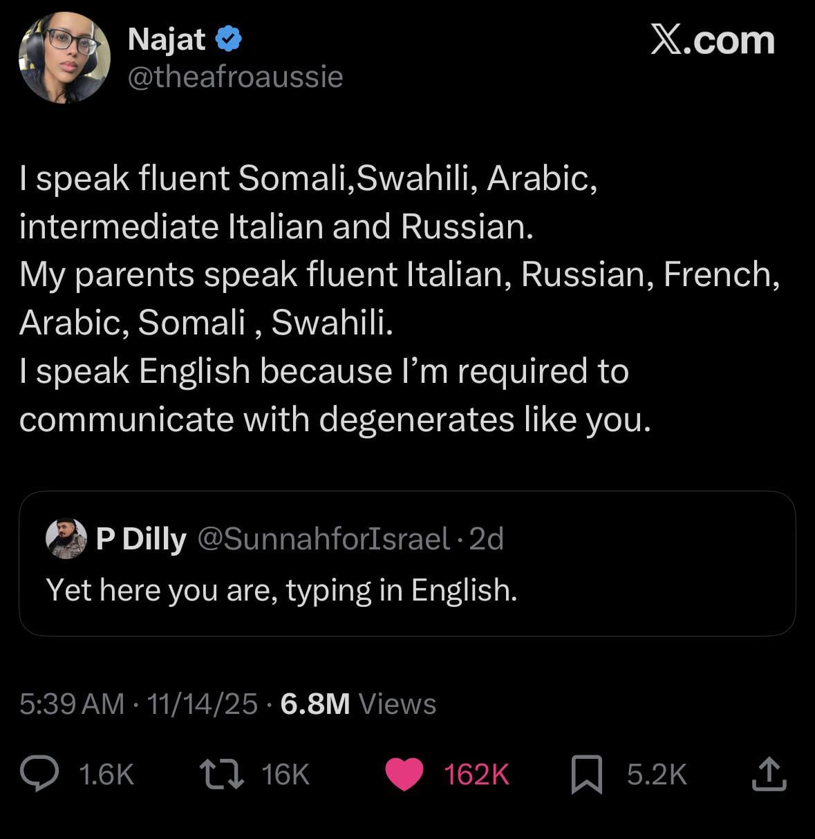 They always treat it like some big “gotcha” moment when the English and Europeans forcibly colonized the majority of the world and erased most of their languages from existence.
