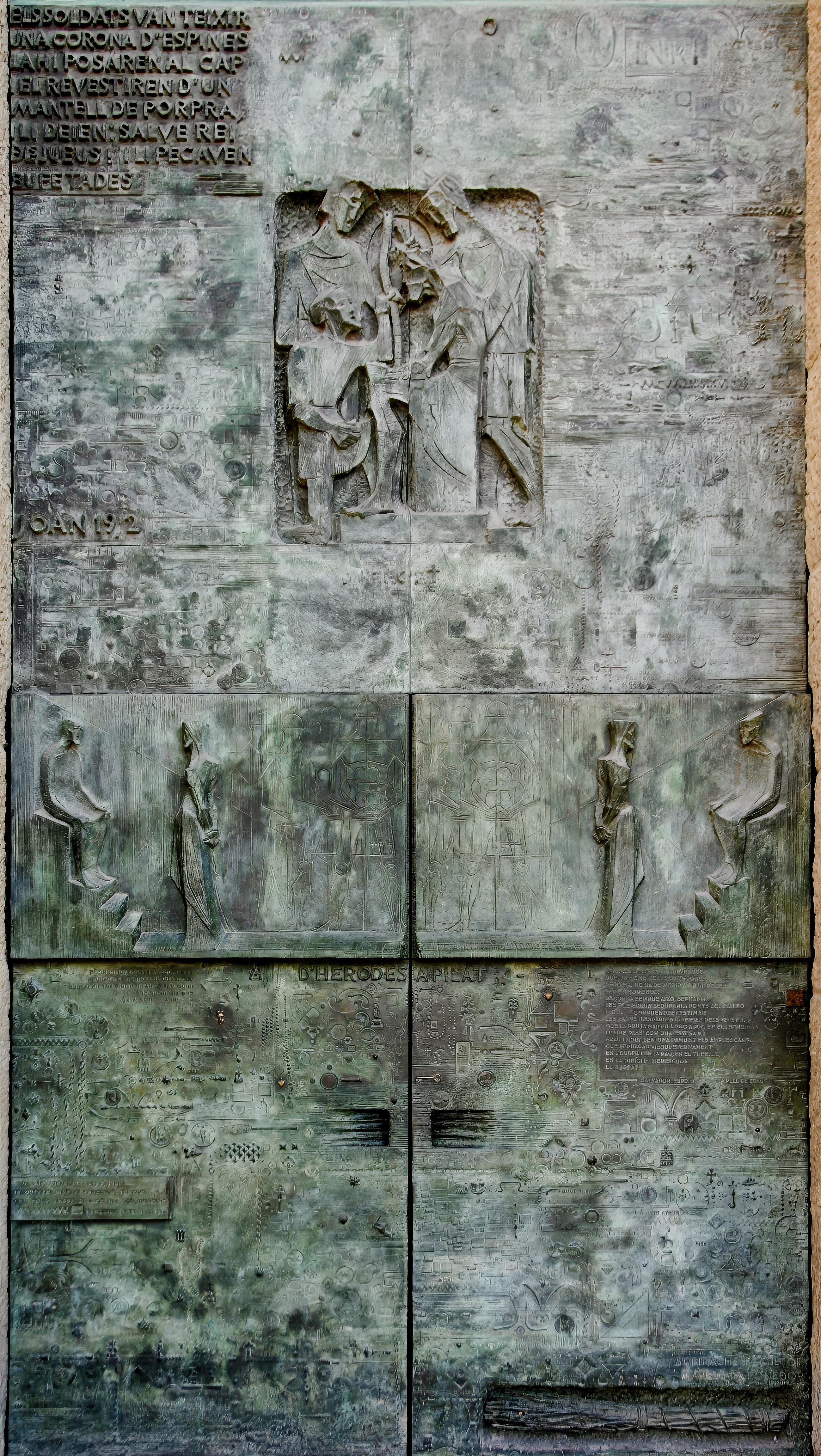 Door of the Crowning with Thorns, casted in bronze by Josep Maria Subirachs and installed at the Passion Facade of the Sagrada Família, Barcelona. The bronze door measures more than five meters (about 16 feet 5 inches) in height. Late 20th century [2597×4606]