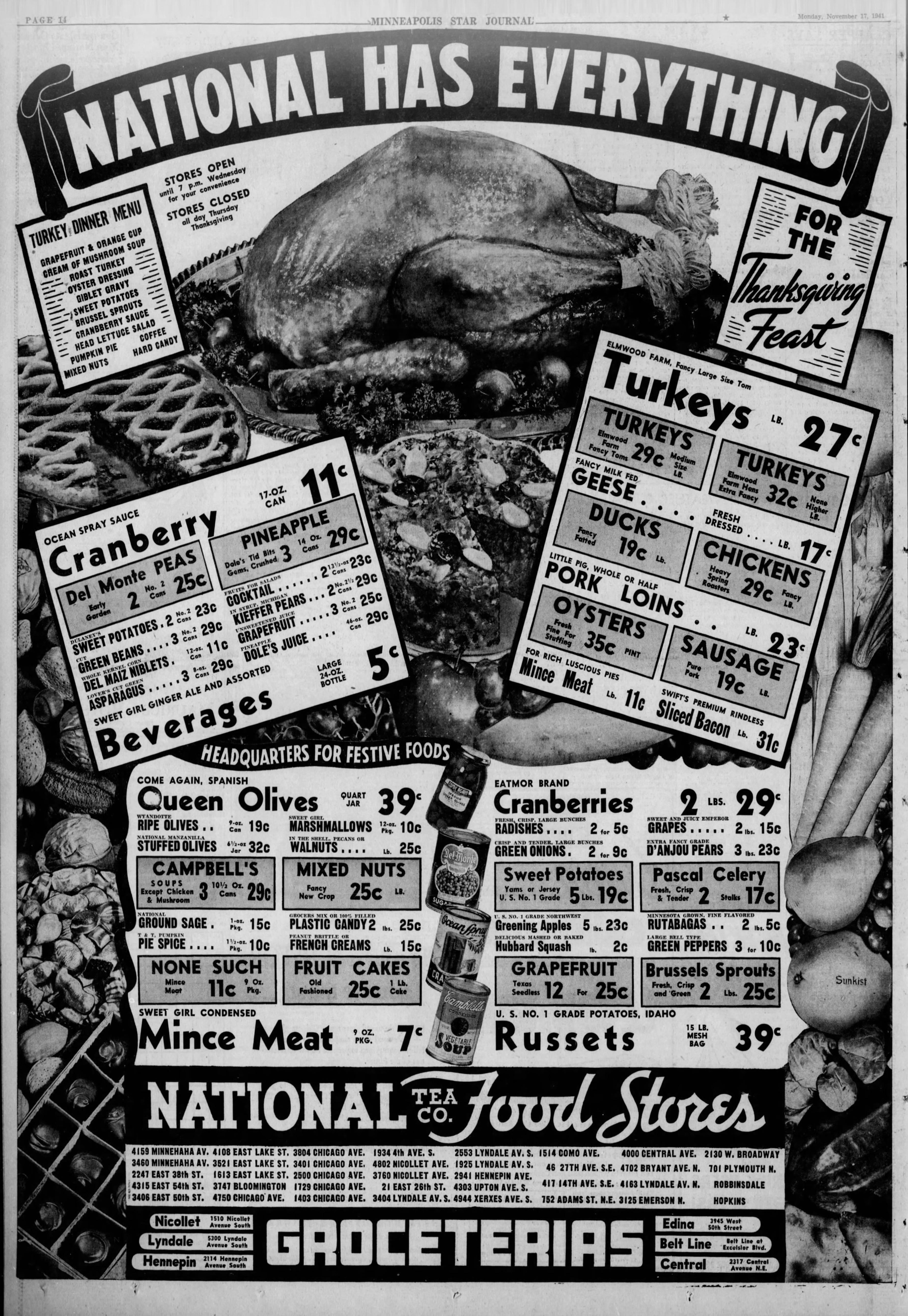 November 17, 1941: National Tea Company Food Stores Advertisement – Minneapolis Star Journal by LuckySimple3408