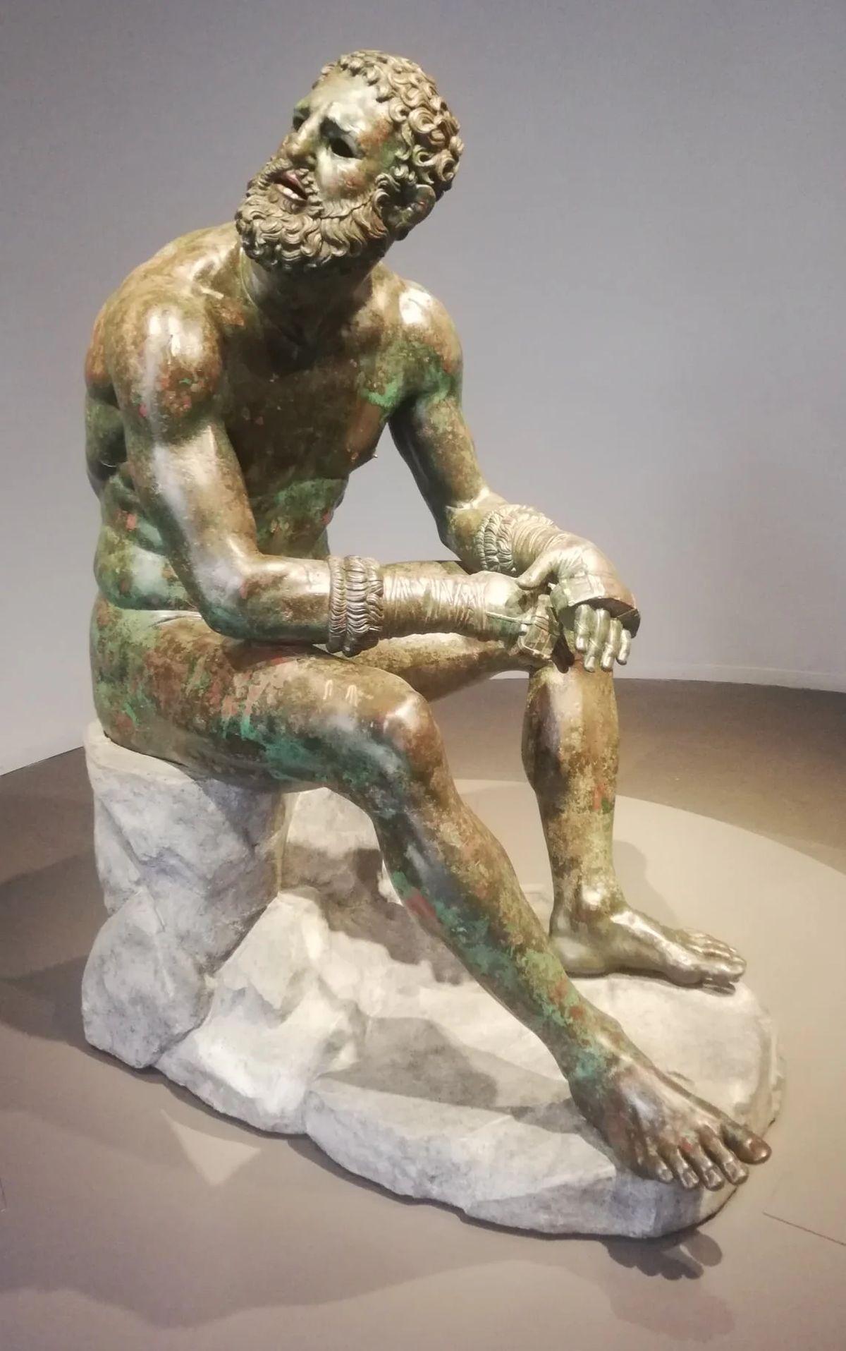 The sculpture of the boxer is one of the two found during the construction of the Quirinal Theater in Rome. Both were buried very carefully, perhaps in order to hide them from looters. [1200×1915]
