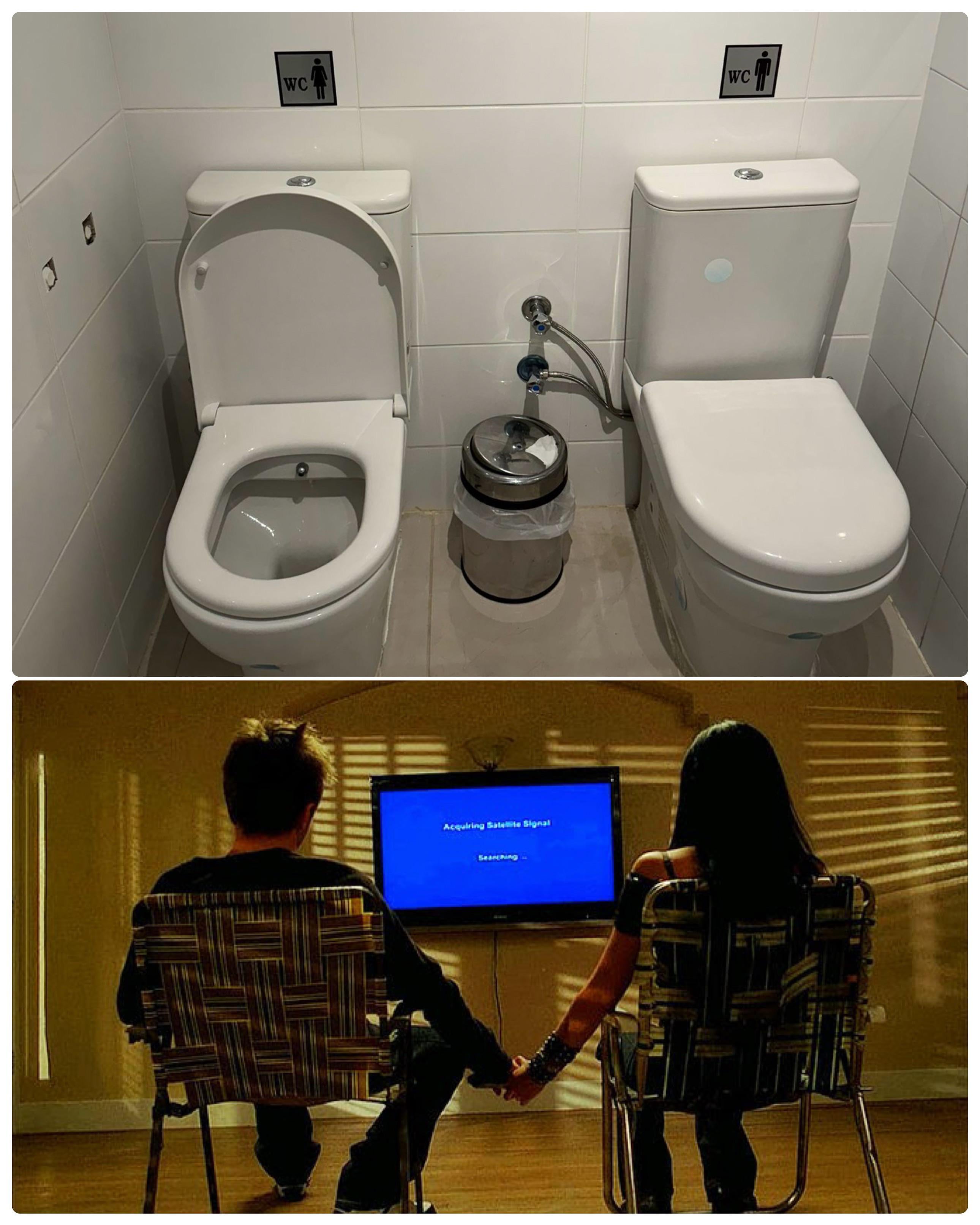 1. My niece and nephew who are twins put side-by-side toilets in their roblox house, I thought it was hilarious. Now I see they were ahead of their time.