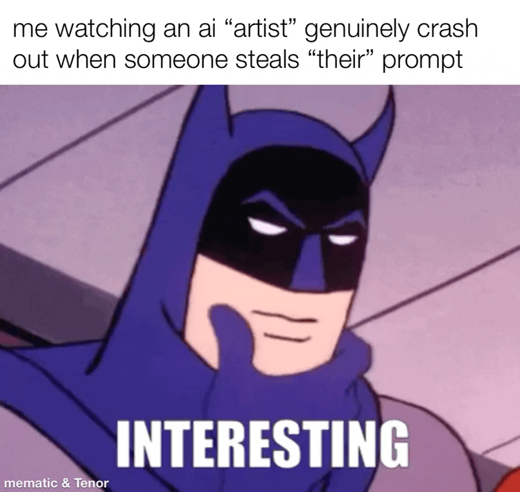 So crying over a “stolen prompt” is like a real artists complaining someone used the same paint colors and brushes as they did….