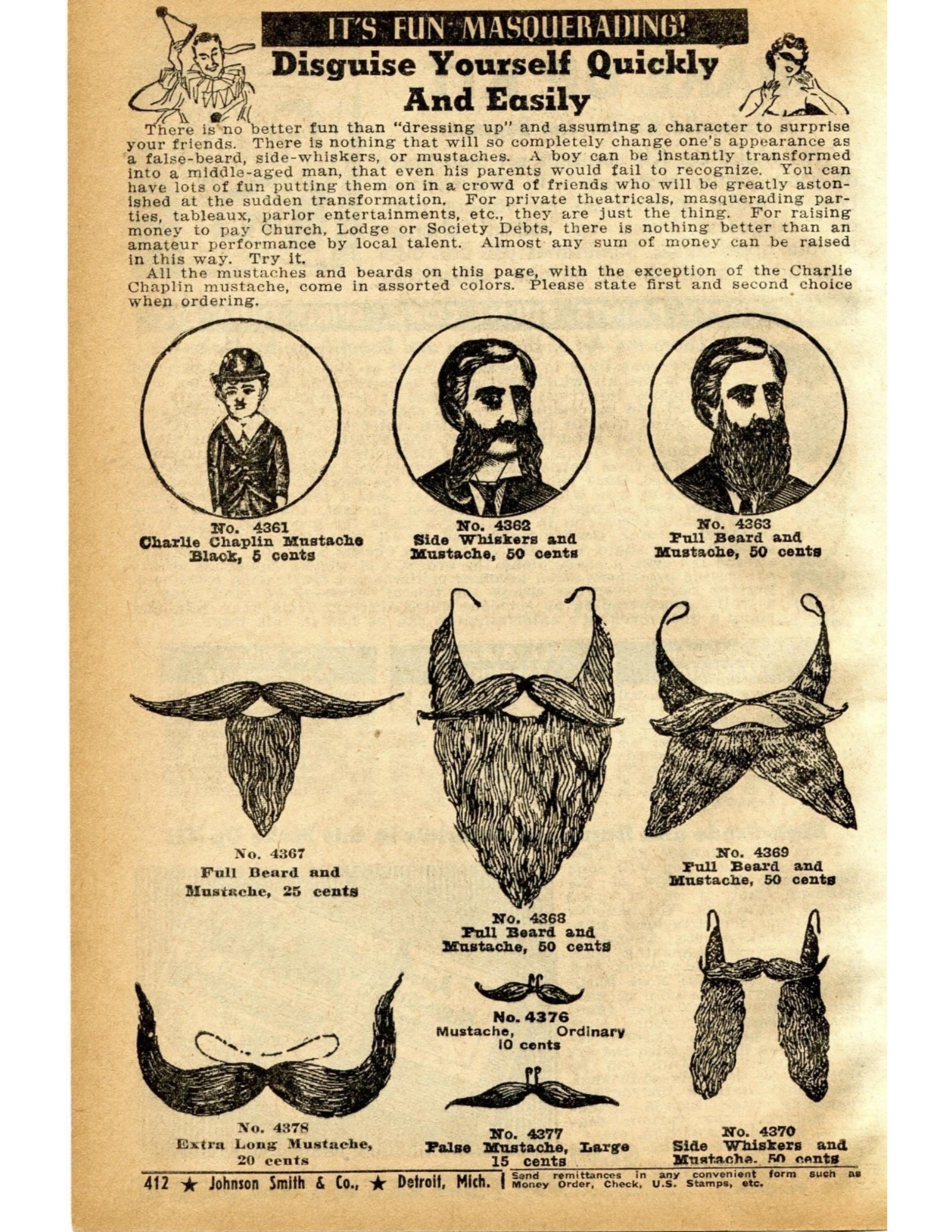 Fake mustaches and beards, 1940