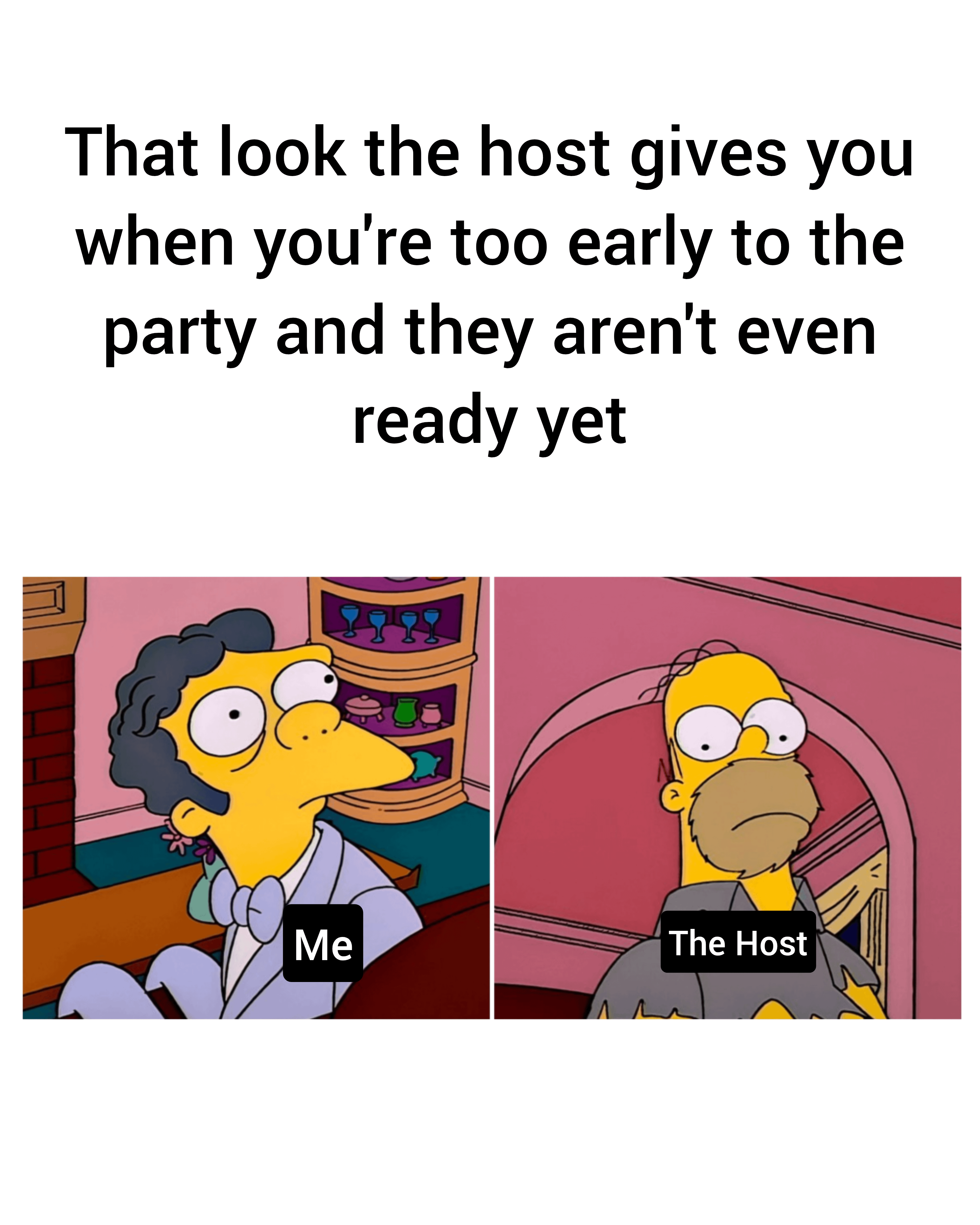 Oh man. A couple of years ago we were having a party for my daughter’s birthday. We invited kids from school obviously and it was at an age where parents are expected to stay. We are also always busy to the last minute because… we just are. Dude and his daughter show up more than an hour early! It was an honest mistake of getting the time wrong, but damn it was awkward bc we barely knew him and we were still trying to make the place look presentable, not the squalor we live in day to day. It turned out to be fine, but still… luckily he was a chill dude and my wife and I thought they could become friends, but i don’t want that to ever happen again.
