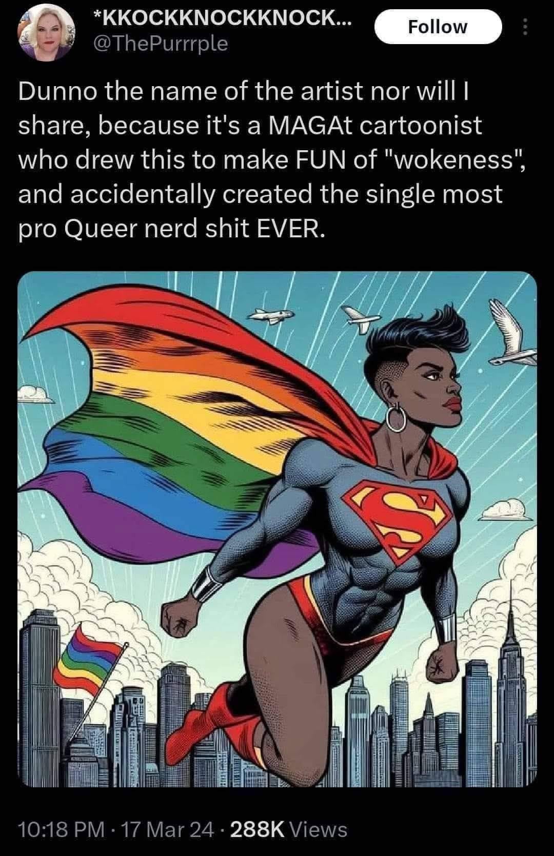 FUN FACT: maga cheerleaders would be publicly hating on this drawing while secretly wishing this superwoman would peg the shit out of them all weekend long…….