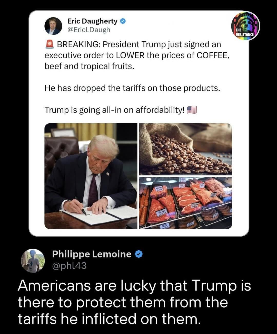 What a crock of shit. If he were truly going “ALL-IN on affordability”, why isn’t he dropping ALL OF THE TARIFFS?