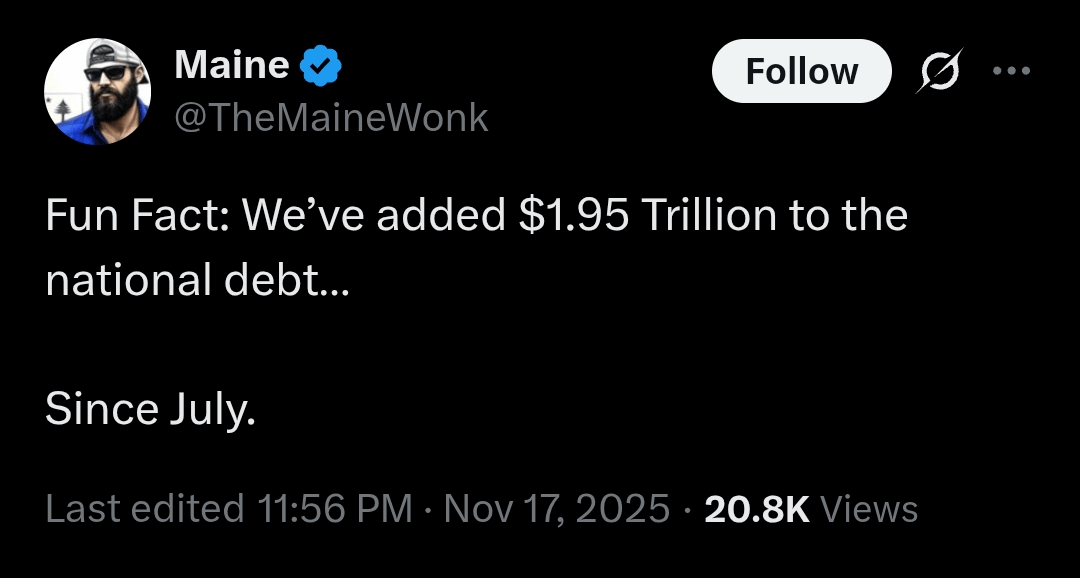 2. Just wait until those 5k Doge and 2K Trump checks arrive baby ..debt reduction is for future Democrats (I hate this timeline)