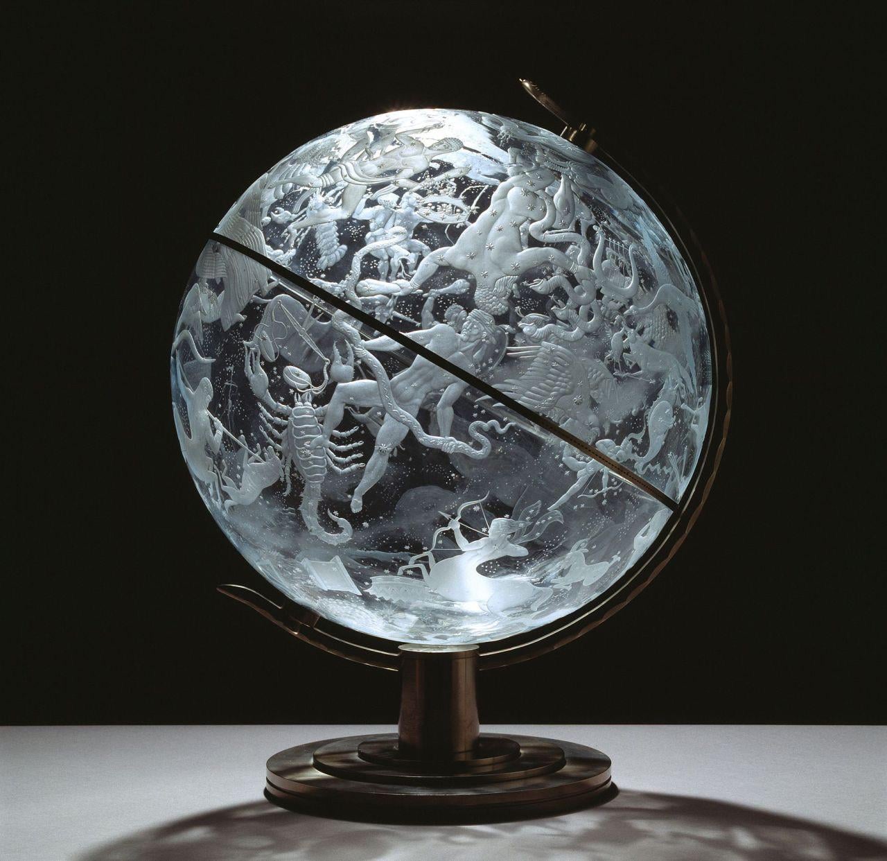 This celestial globe is engraved with the twelve signs of the zodiac. Glass engraving was an almost forgotten technique when Orrefors revived the method in the 1910s. Simon Gate and Edward Hald won great international acclaim, enabling the glassworks to start a school for engravers. At most, there were 36 engravers working at the factory at the same time. Hald’s globe was made for the Stockholm Exhibition of 1930. It is a magnificent finale to the heyday of engraved glass in the 1920s.