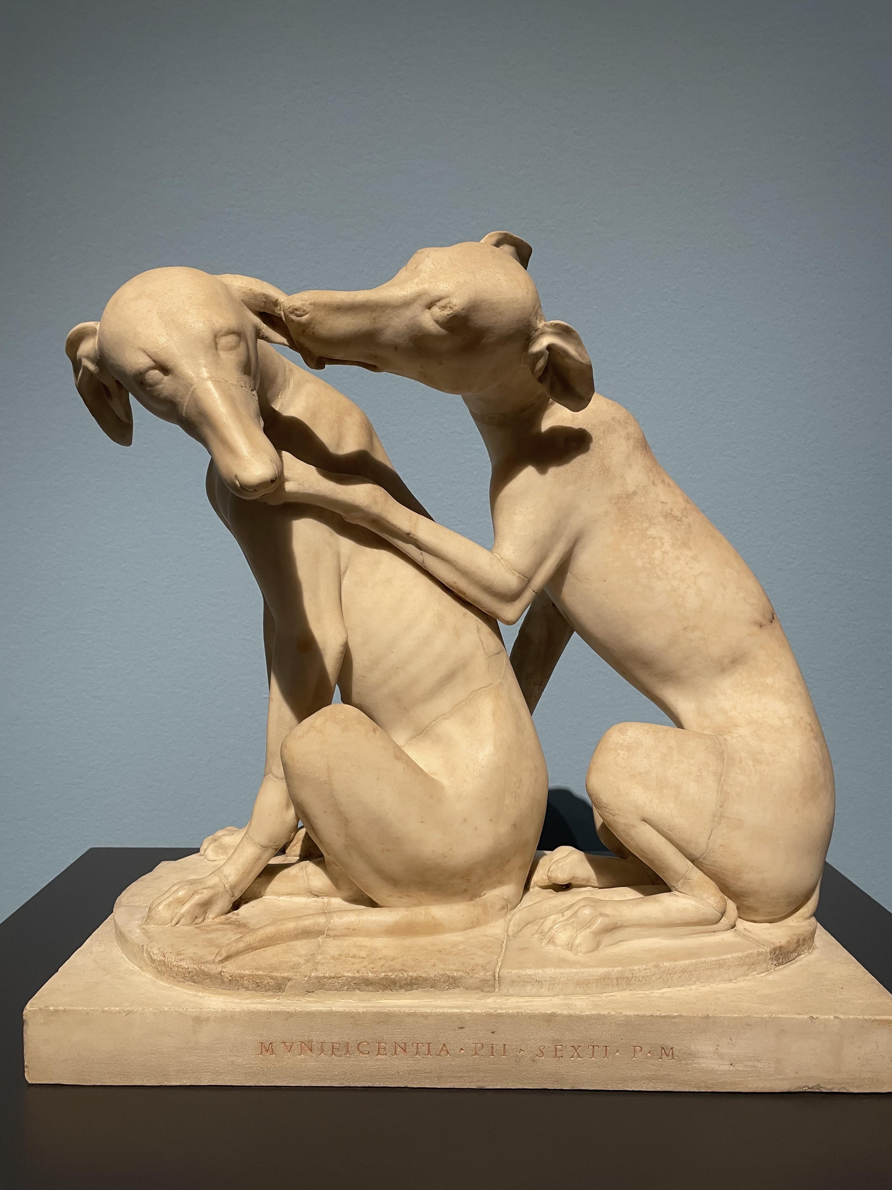 This statue was on display at the Museum of Fine Arts Houston, in a special exhibit called *Art and Life in Imperial Rome: Trajan and His Times*. The focus was on Trajan and his reign, but there was a variety of Roman art on display, such as frescos from Pompeii and a statue of Caligula. This statue of two greyhounds is from the Vatican Museums iirc.