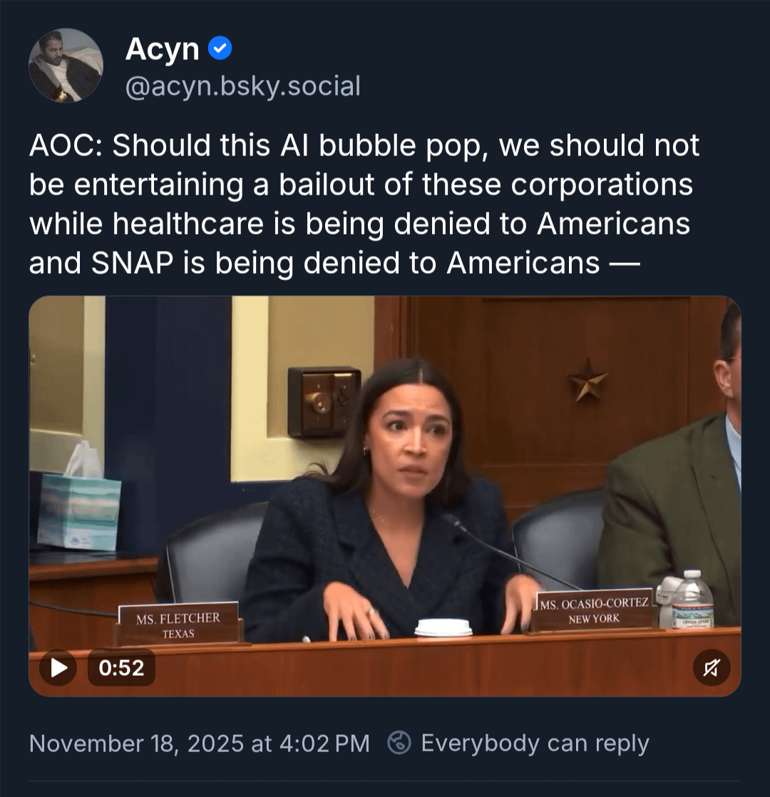 BIRD_OF_GLORY on November 19, 2025 12:37 am Corporations run the government. Don’t be surprised if they’re already drafting the bailout