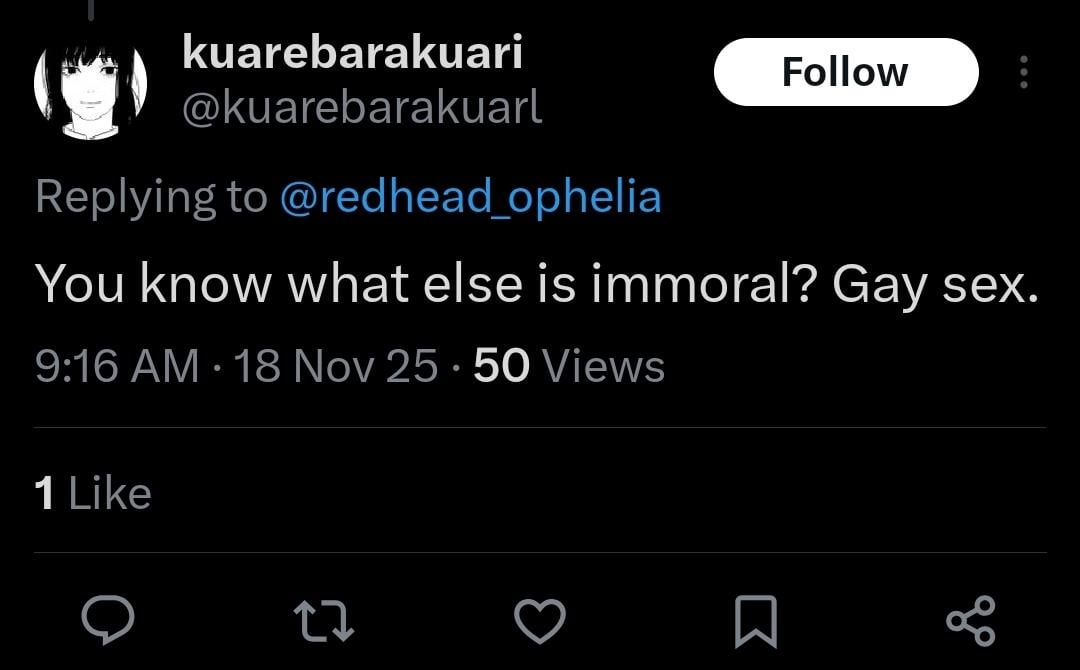 What’s really crazy is using old books and fairy tales to guide morality instead of good ole fashioned logic. You wind up with bullshit like this otherwise. Sex bad, only for reproduction, you’re going to burn in hell blah blah blah.