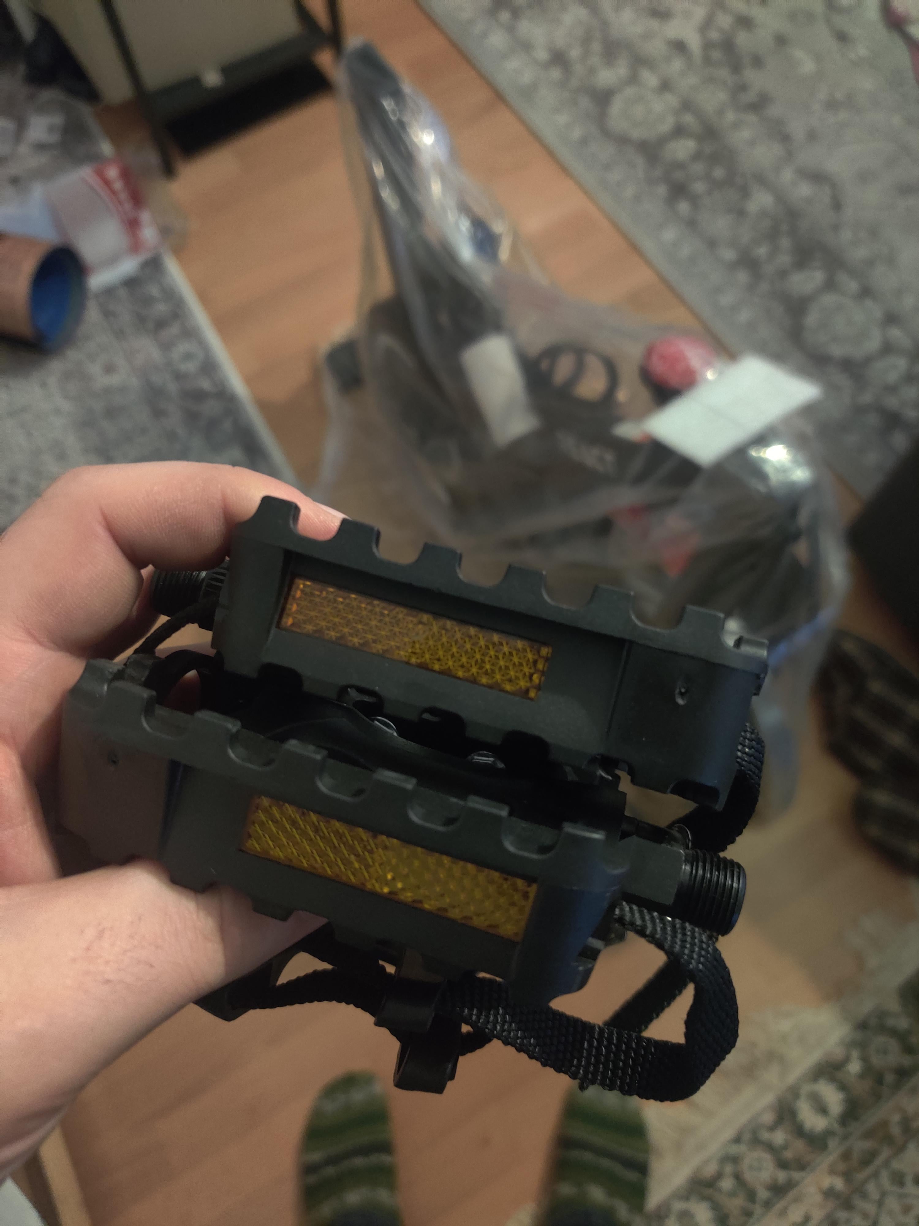 Honestly feels like they just grabbed a box of generic pedals without thinking. At least you’ll be extra visible in your living room.