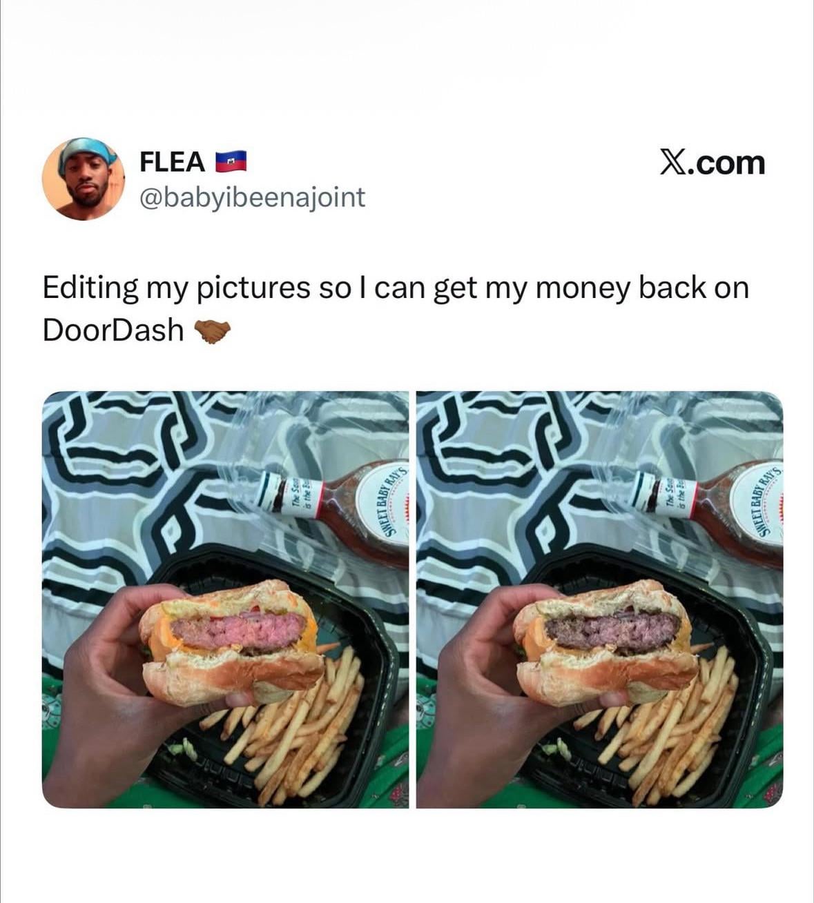 DoorDash be like: ‘Sir this burger looks photoshopped.’