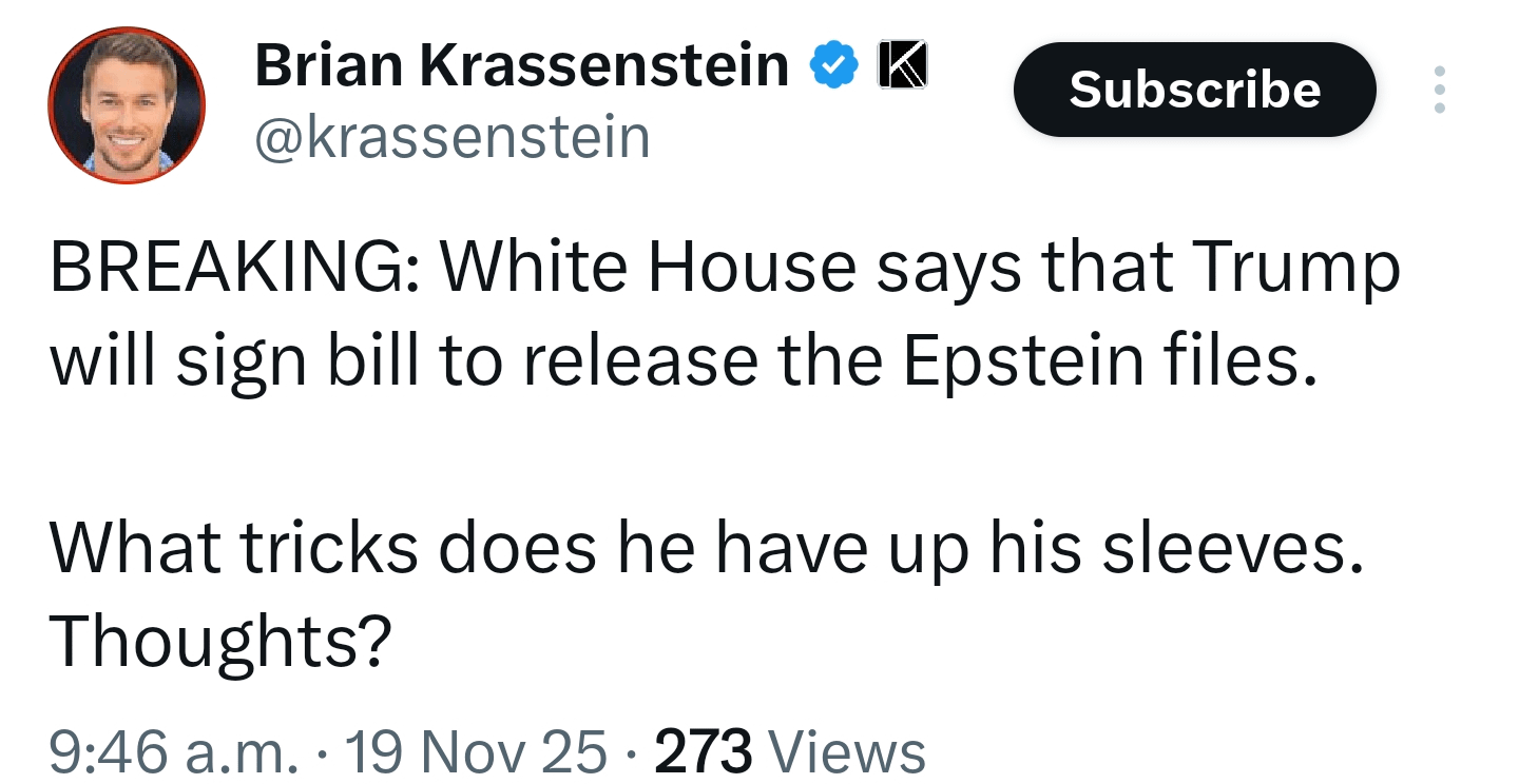 6. I can easily see the DoJ releasing files that have been scrubbed at the behest of Dear Leader so that there is zero mention of him anywhere, which is completely unbelievable. But Dear Leader is a maximalist and not known for subtlety.